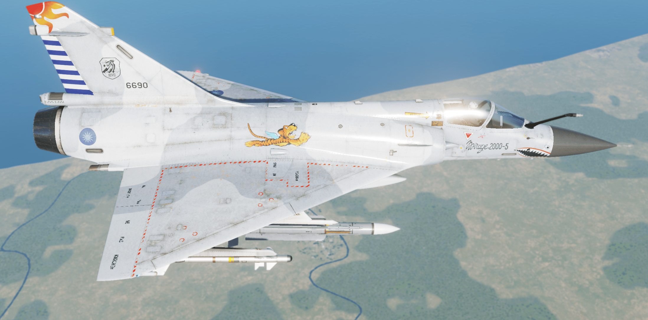 Fictional Mirage skin made based on the real F-16 skin of the ROCAF, Who pays homage to the Flying Tigers squadron of WW2.