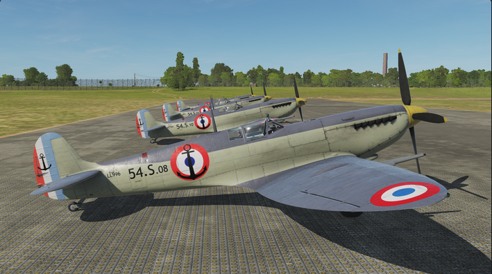 Livery pack based on one of the many variations of Seafire liveries, modelled after the aircraft from the Flotille 54.S, which operated the type between March and December 1950.