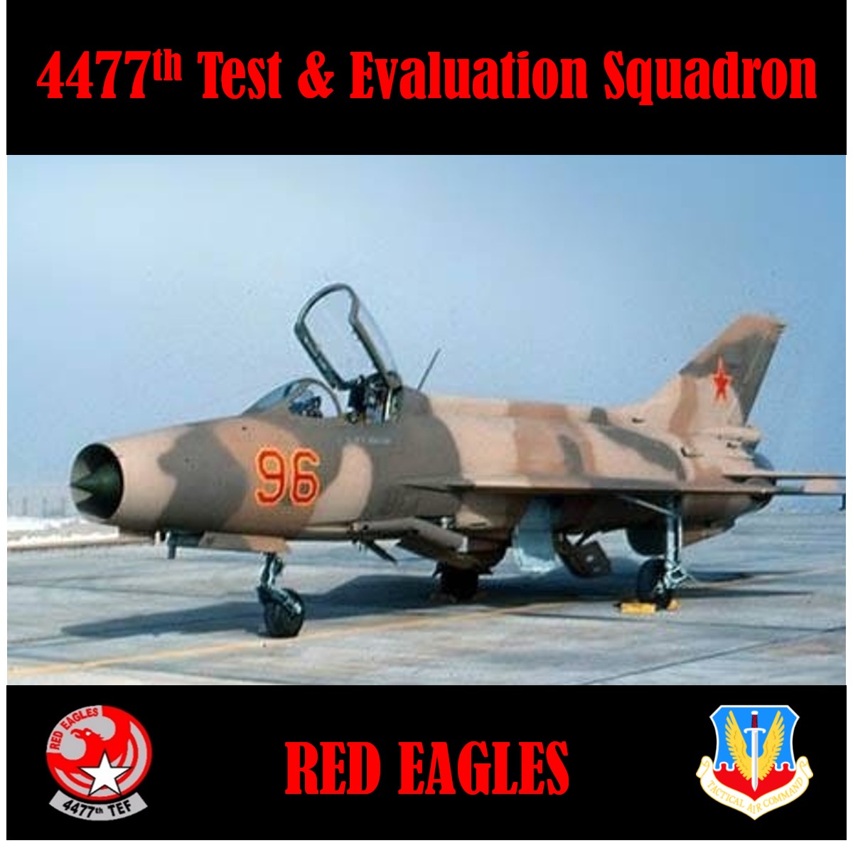The 4477th Test and Evaluation Squadron (4477 TES) was created to expose the Tactical Air Forces to the flight characteristics of fighter aircraft used by Soviet Union during the Cold War. The declassified history of the squadron shows that it operated MiG-17s, MiG-21s and MiG-23s between 1977 and 1988, and was formally disbanded in July 1990.
