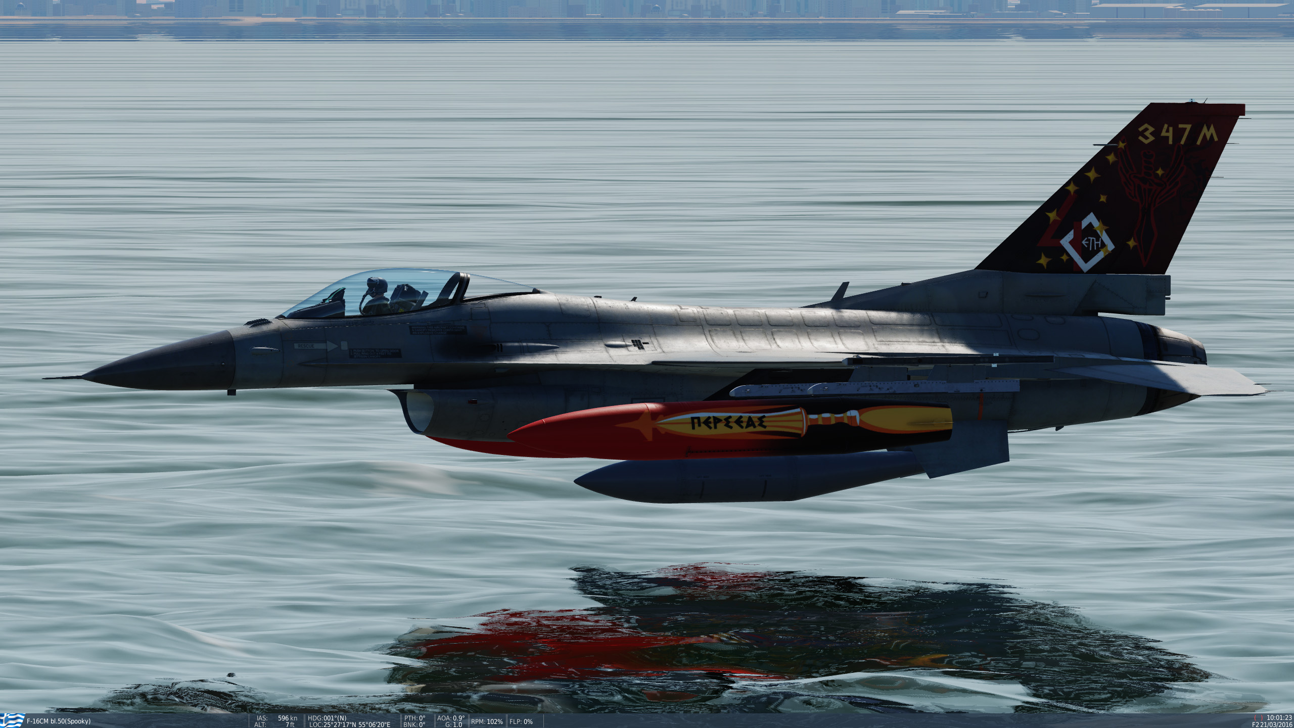 The HAF F-16C (blk 50) with the 347 SQN "PERSEAS" tailart of 111CW.