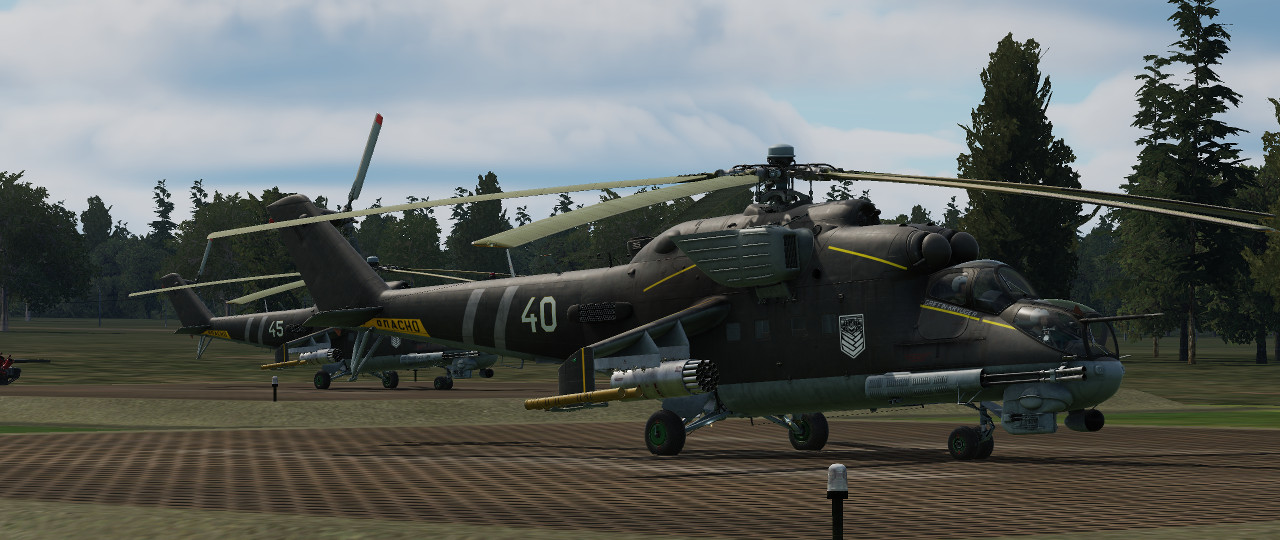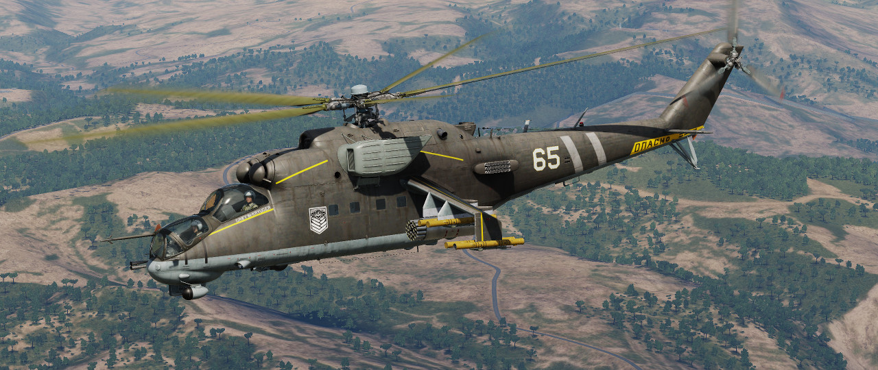 An Mi-24P skin belonging to a PMC, dark grey with yellow accenting.