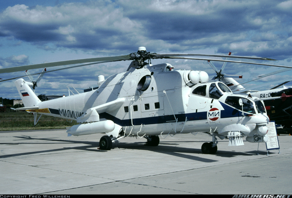 A Russian Police variant of the Mi-24P that (as far as I know) never made it into production, but was instead put on display at MAKS in 1995.