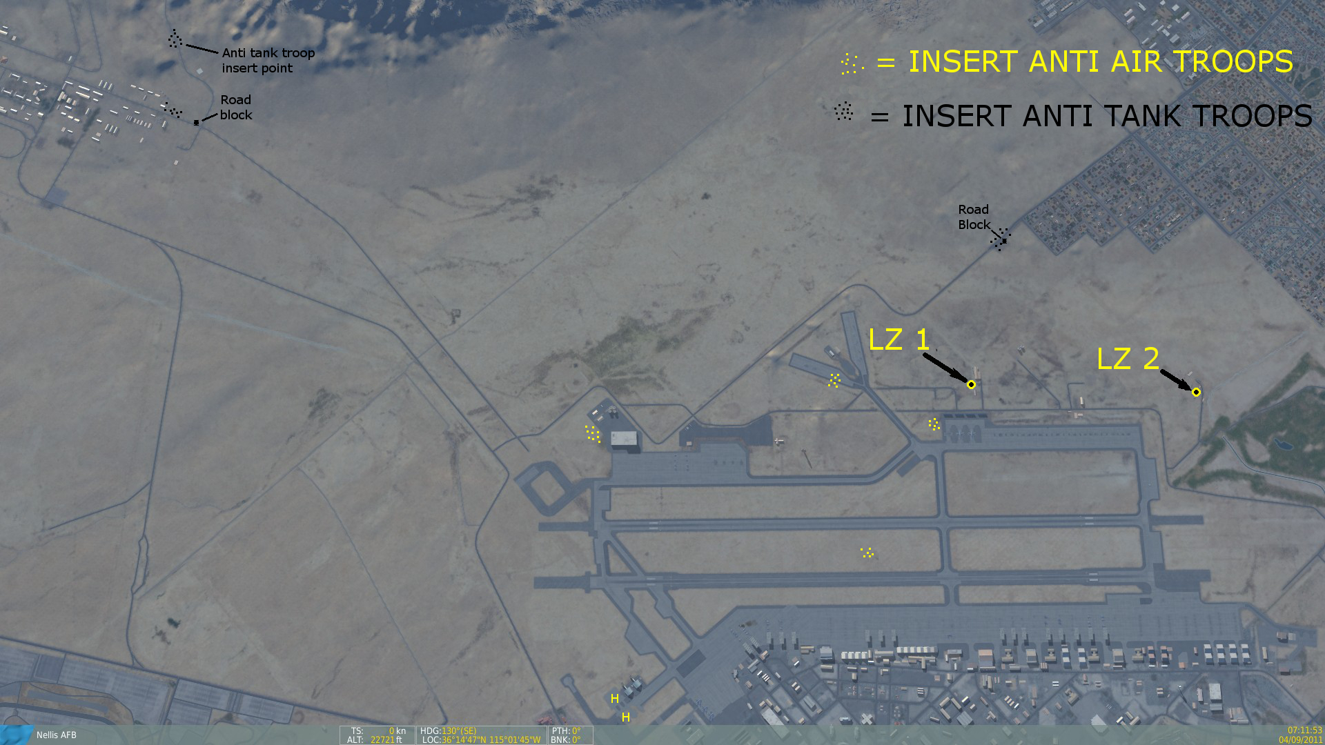 Use your Huey to transport Anti Air troops from multiple LZ's  to points around Nellis field.