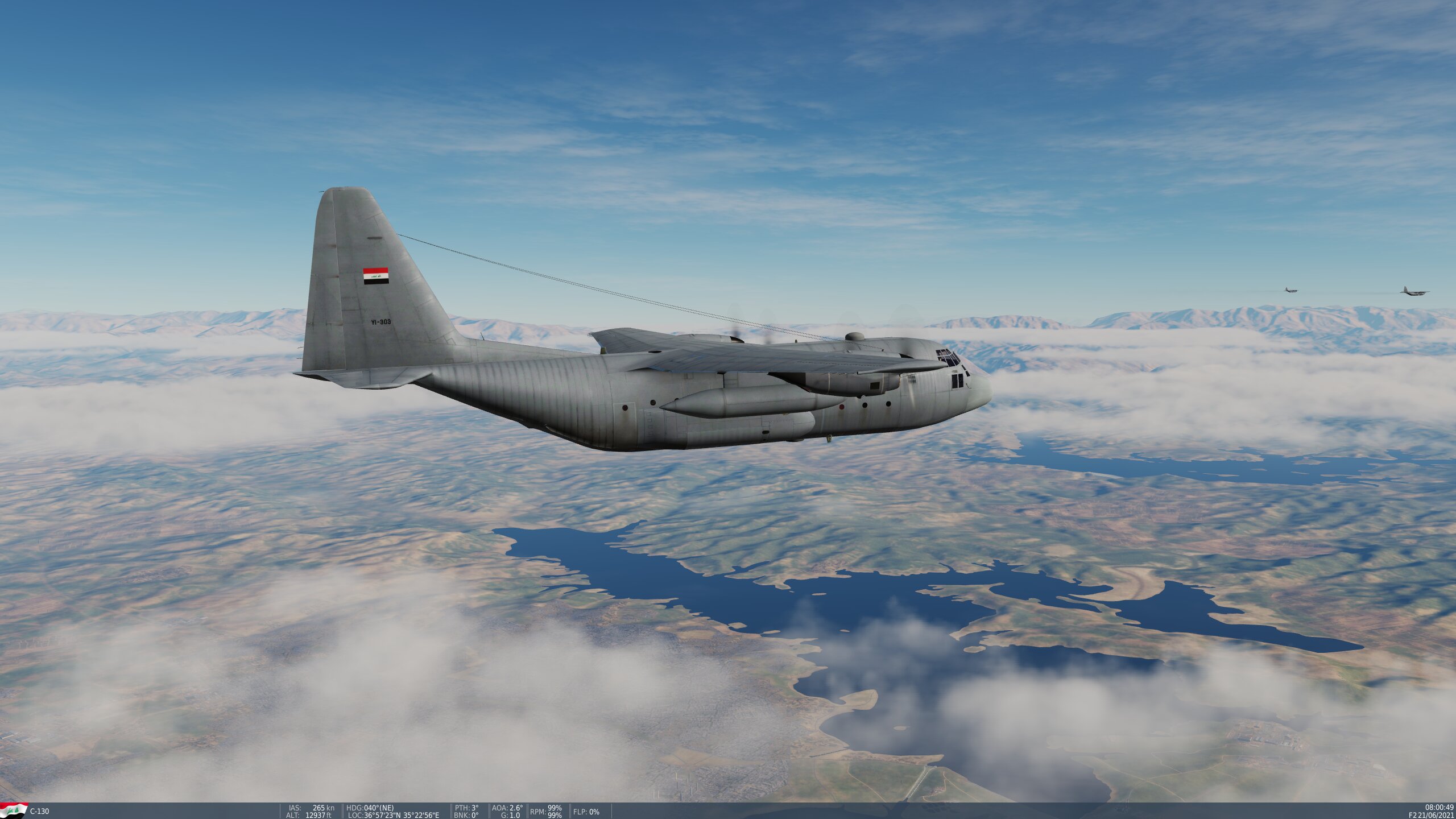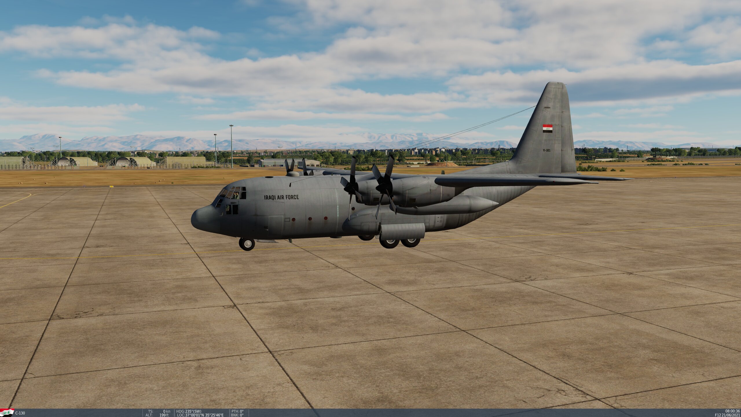 This is a skin pack for the Stock C-130H, depicting the Iraqi Air Force's C-130E type.