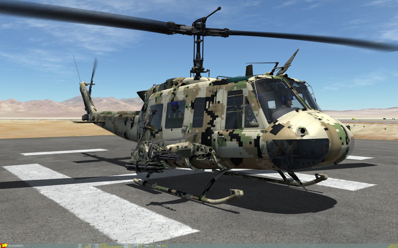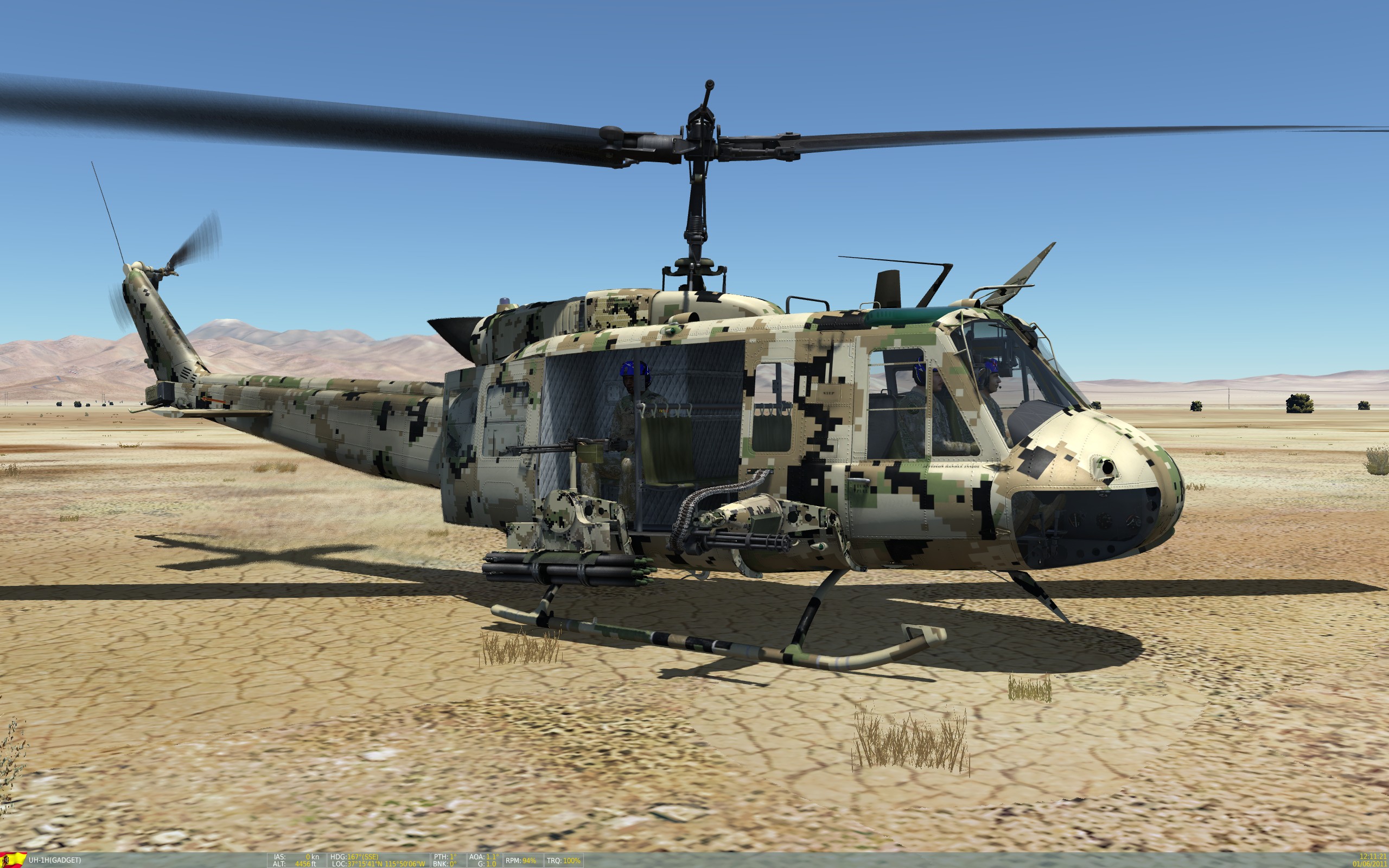 Skin featuring the Hyperstealth KA2 Desert Camo designed for Jordan Army over an UH-1H with no markings.