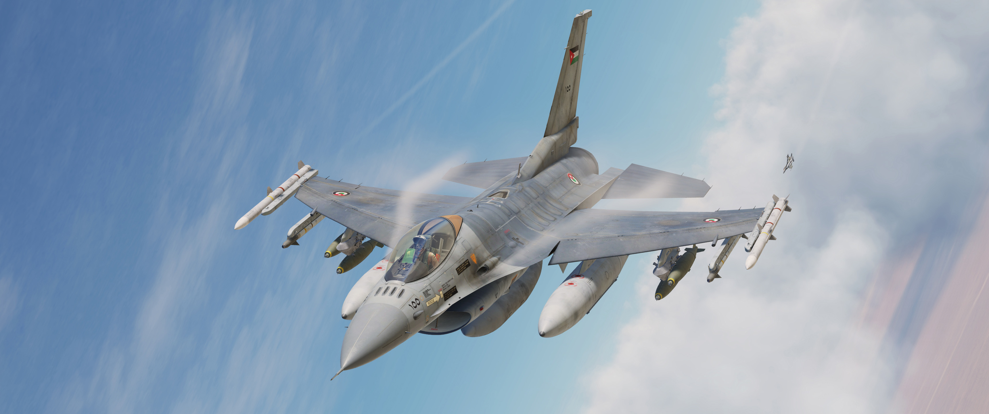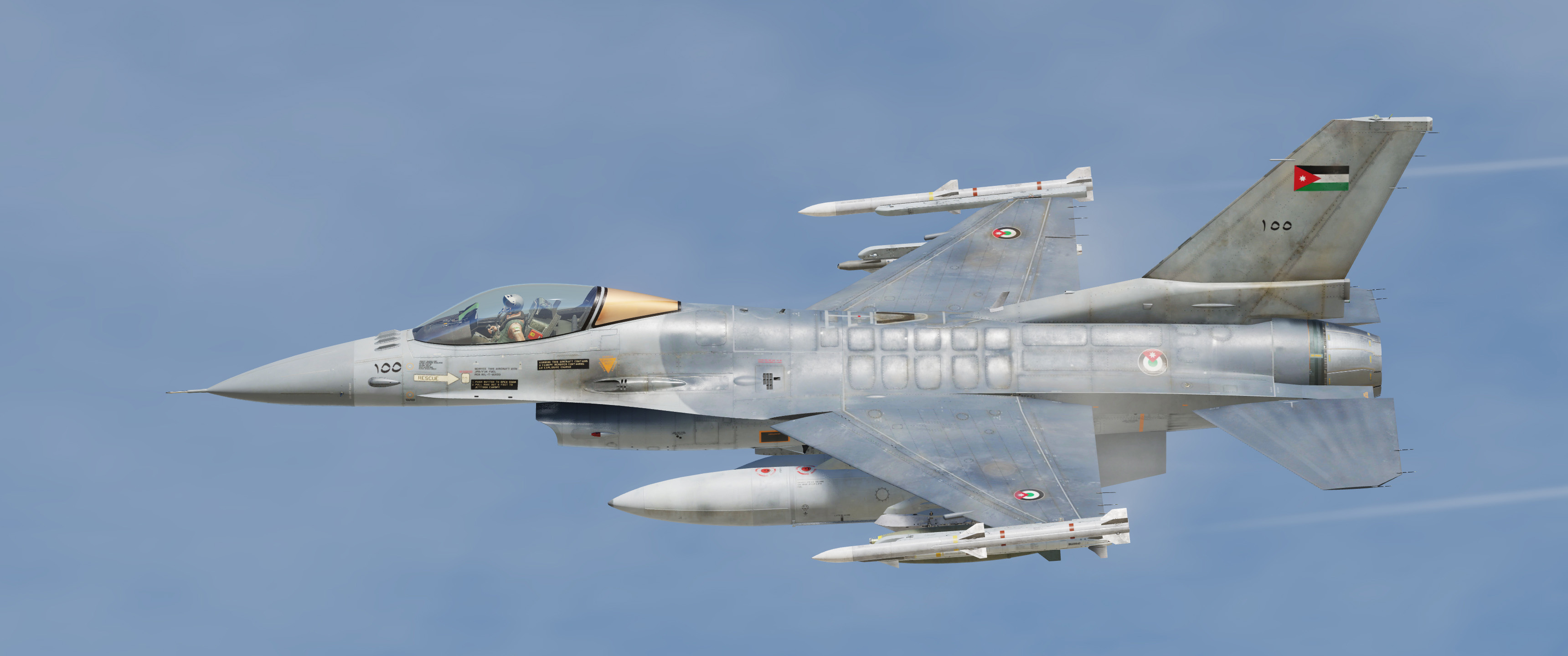 A livery recreation of the RJAF (Royal Jordanian Air Force) F16A Block 20 MLU number 155 of the 1st Squadron.