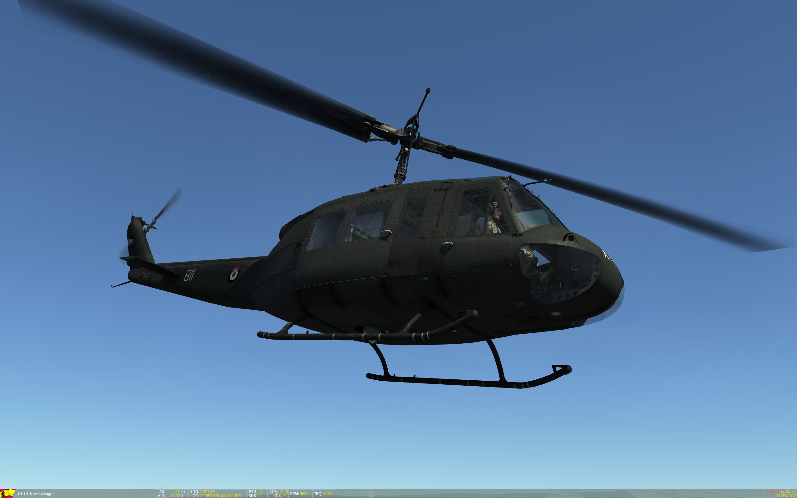 Skin featuring the Hyperstealth SFW Camo designed for Jordan Army over an UH-1H with no markings.