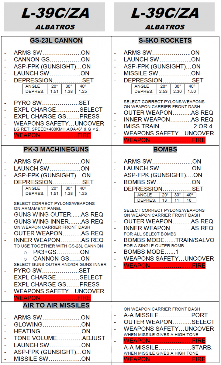 L-39C and L-39ZA Weapons Quick Checklist. (Update vs 1.1)