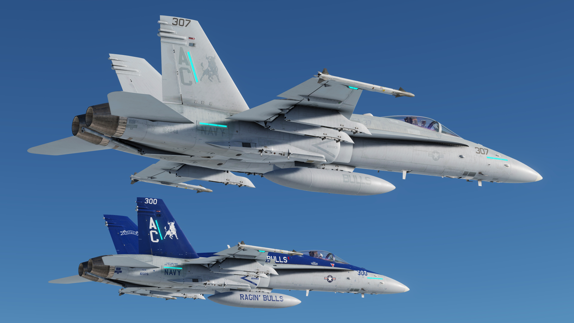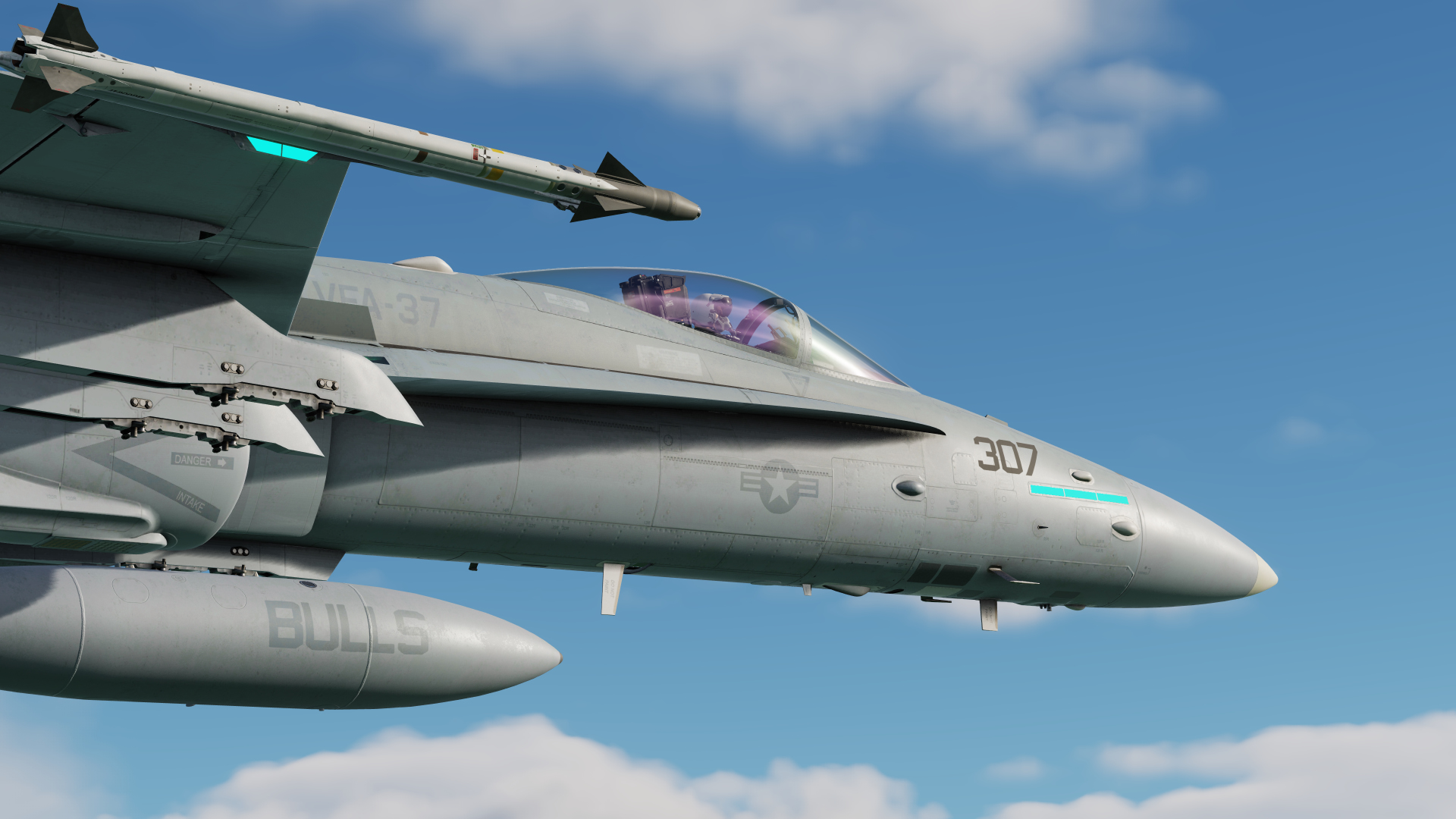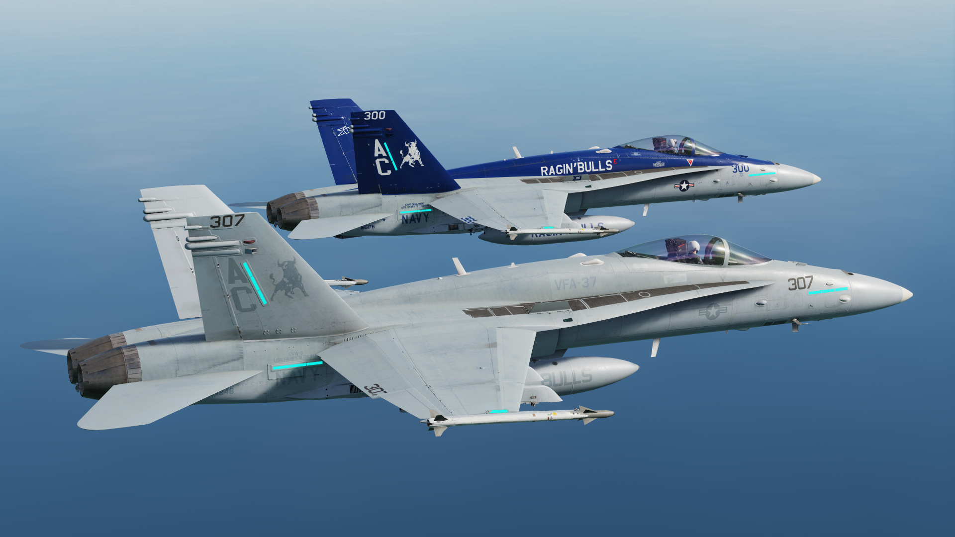 Two liveries for the F/A-18C; 300 and a low visibility livery with dynamic bort numbers. Includes the patches, a white helmet and different weathering to the default VFA-37 livery.