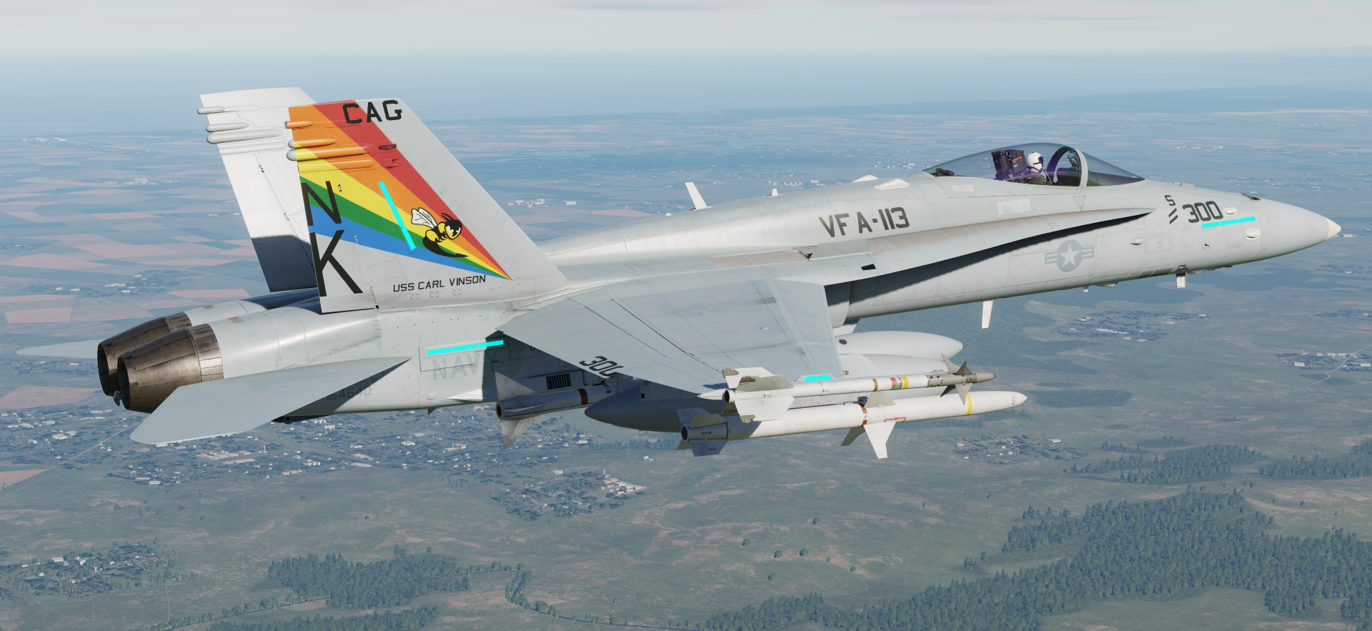 Two liveries for the F/A-18C; 300 and a line jet livery from around the mid to late 90s with dynamic bort numbers. Includes the patches, a white helmet without JHMCS (to better represent timeframe of the livery) and different weathering/roughmets to the default VFA-113 livery.