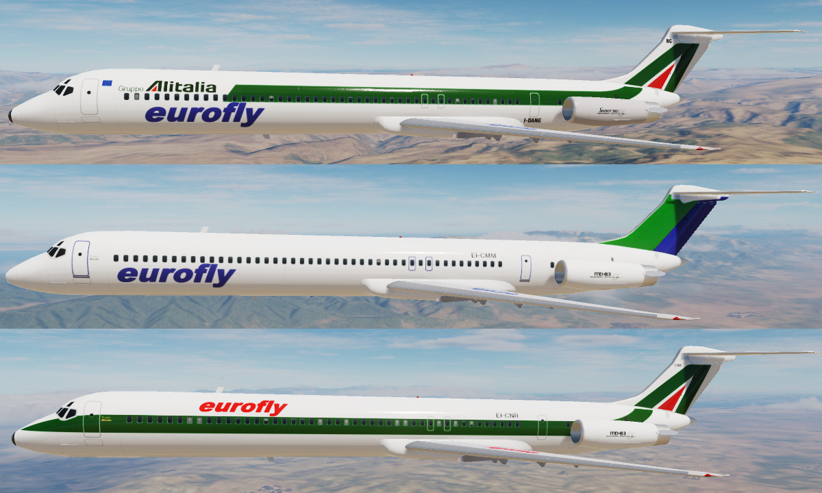 Alitalia, Ati, eurofly skinpack rev2 for T-Tail Twin Jets DC-9, MD-83 mod (TTTwJ) 28/Jan./2024