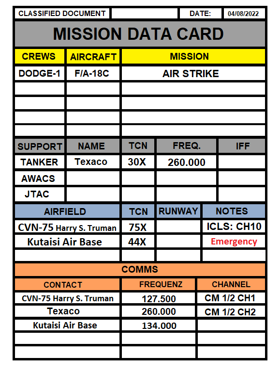 Georgian Forces and Akbhazian Troops are engaged in a battle between Dgvaba and Larchva. Your flight will strike the Akbhazian Supplies to help our Georgian friends win the battle. This is a nice early morning strike mission with a lot of atmosphere and action. I'd say it is medium difficulty.