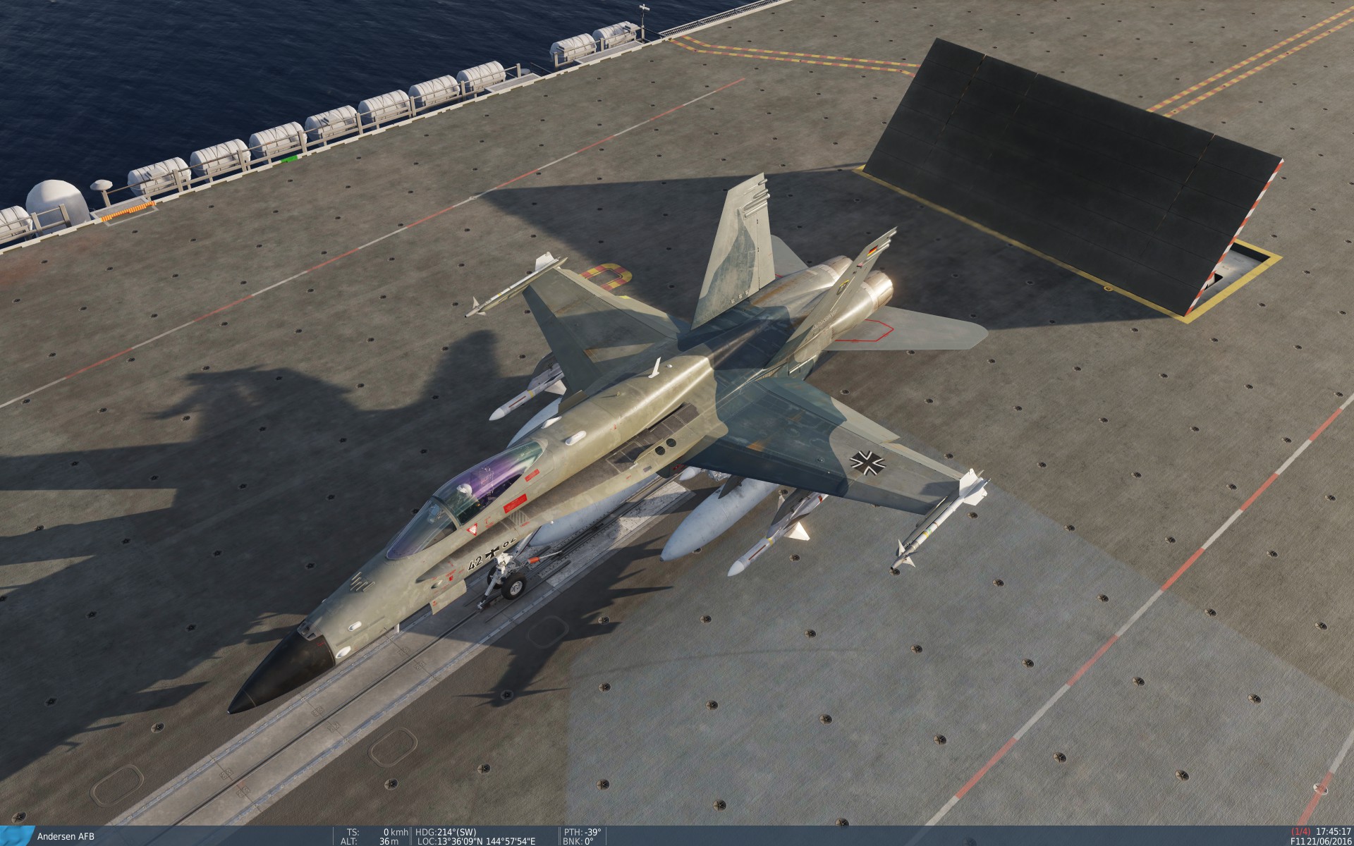 This is a two colored fictional skin for the F/A-18C Lot 20 representing the german Marinefliegergeschwader 1 (MFG 1).