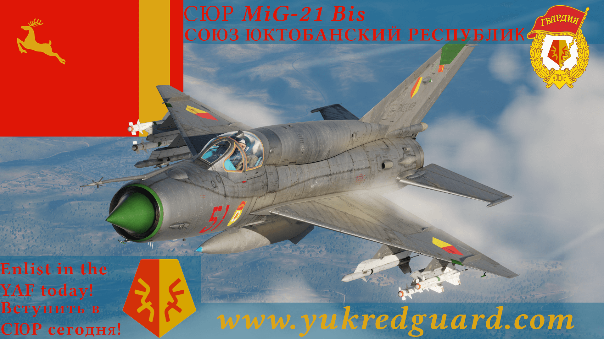 The Yuktobanian Red Guard is proud to release our organizations 8th official livery. This skin is a 1 to 1 recreation of the original Yuktobanian MiG-21 livery from Ace Combat 5: "The Unsung War" with minor adjustments to be compatible with DCS. This livery is as close to the original Yuktobanian Aerospace Forces official liveries.