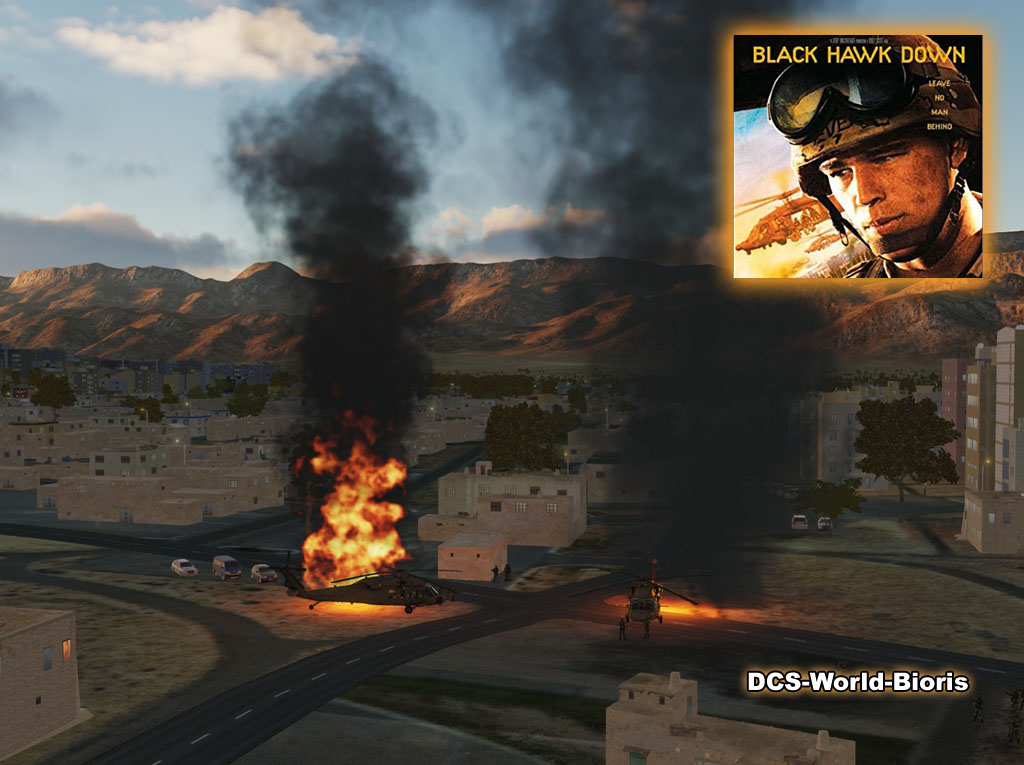 - Mission basée sur le film "Black Hawk Down" dans lequel des soldats US sont pris à parti en pleine ville en Somalie après s'être écrasés en hélico Blackhawk.
