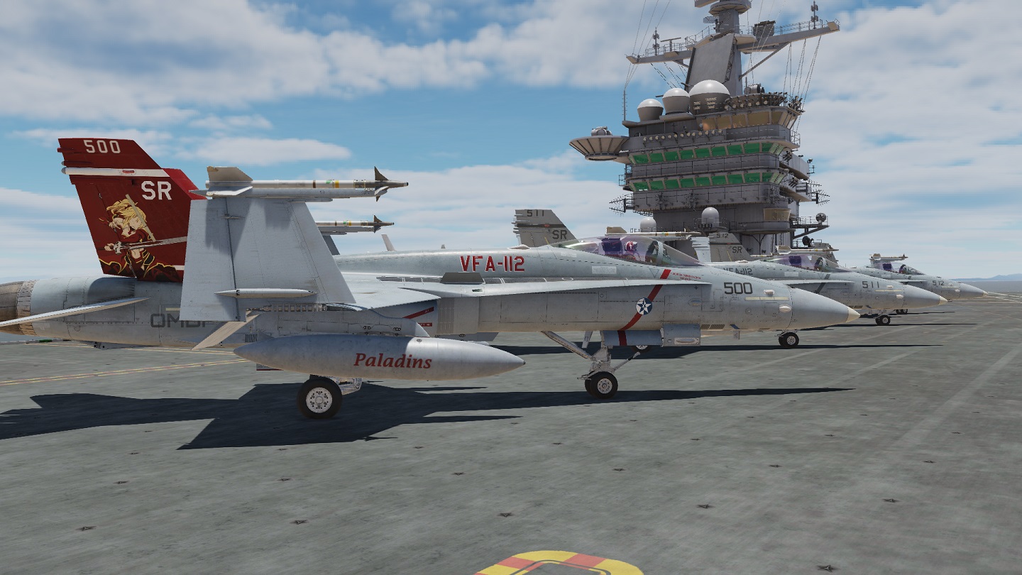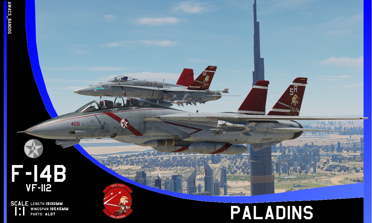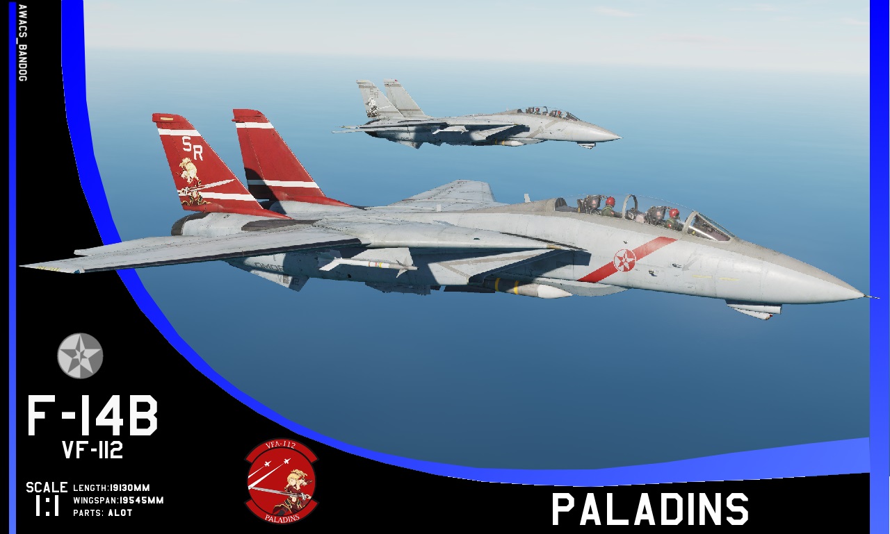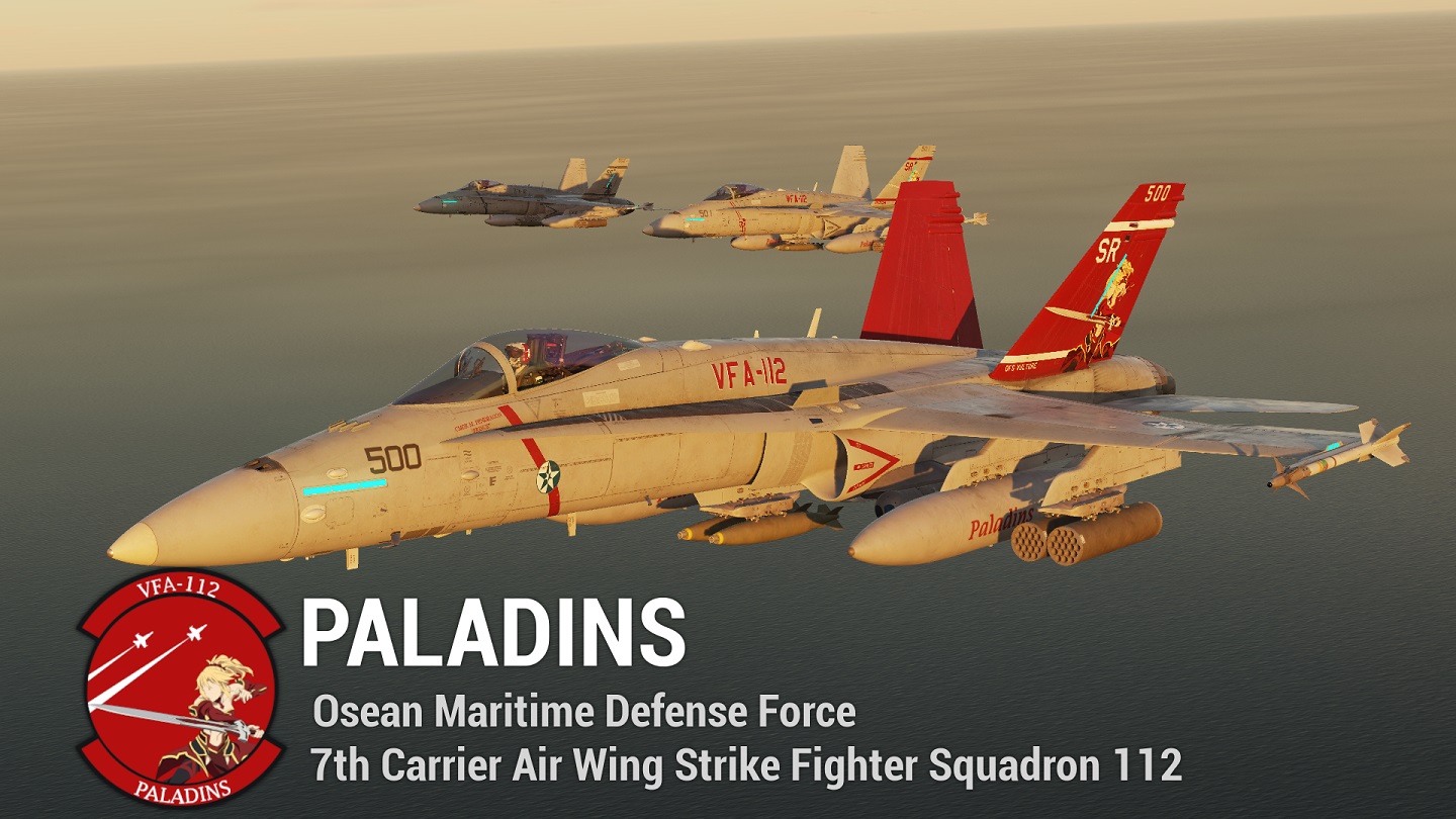 Established in 1982 at NAS Meridian, StrikeFitron 112 ‘Paladins’ would become one of the first stood up F/A-18 Hornet squadrons within the OMDF, and notably, made primarily fr om members of the F-14 Community, pulling pilots from both the VF-12 ‘Knights’ and  VF-83 ‘Warhawks’. Carrying over most of the traditions from the Knights, VFA-112 would earn their battle colors in 1993 during the ‘January Fifth Incident’, wh ere Paladin Hornets would shoot down four F-5N fighters from Sotoa.