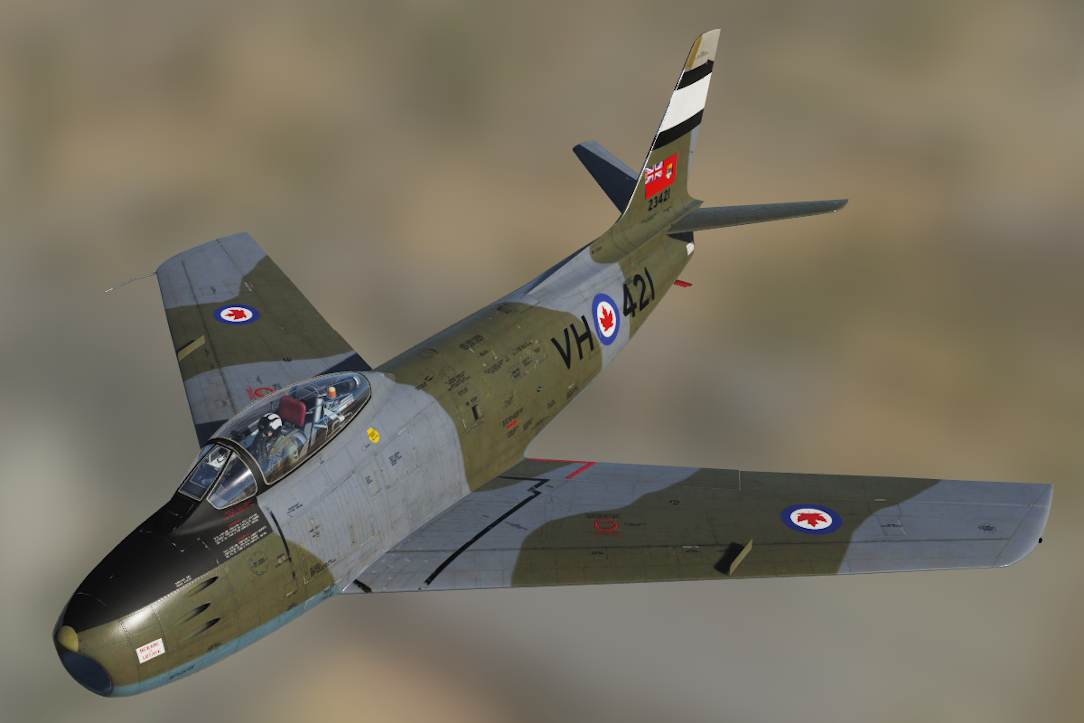The cockpits of Canadair-built Sabres differed slightly from their US-built counterparts. This texture pack can be used to simulate the cockpits of the Canadair Sabre Mk.5 and Mk.6, as flown by Canada, as well as other nations including West Germany, Columbia, Pakistan, and South Africa.