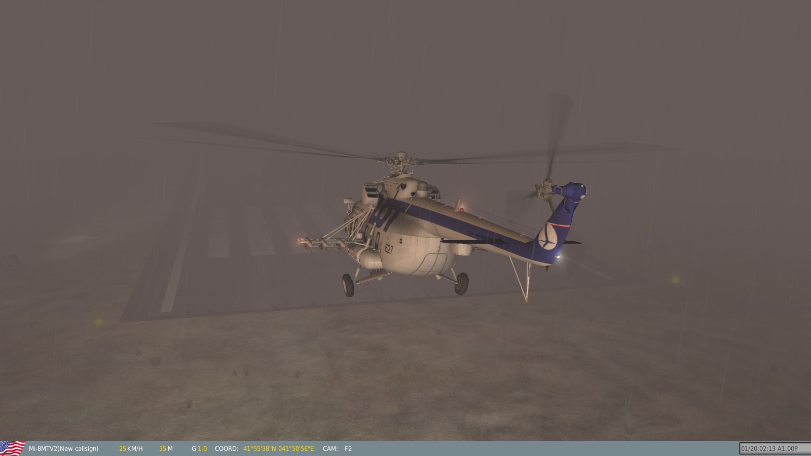 Mi-8 IFR mission.  Weather is windy, 110m visibility in fog & rain. You have to take-off & perform an ARK (NDB) approach at Kobuleti! This mission will test all your piloting skills. Do you have the nerves for it? Mission time 10-20 min.