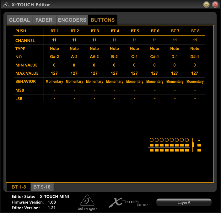 1. make sure your X-Touch-Mini is configured same way as presented on screenshots