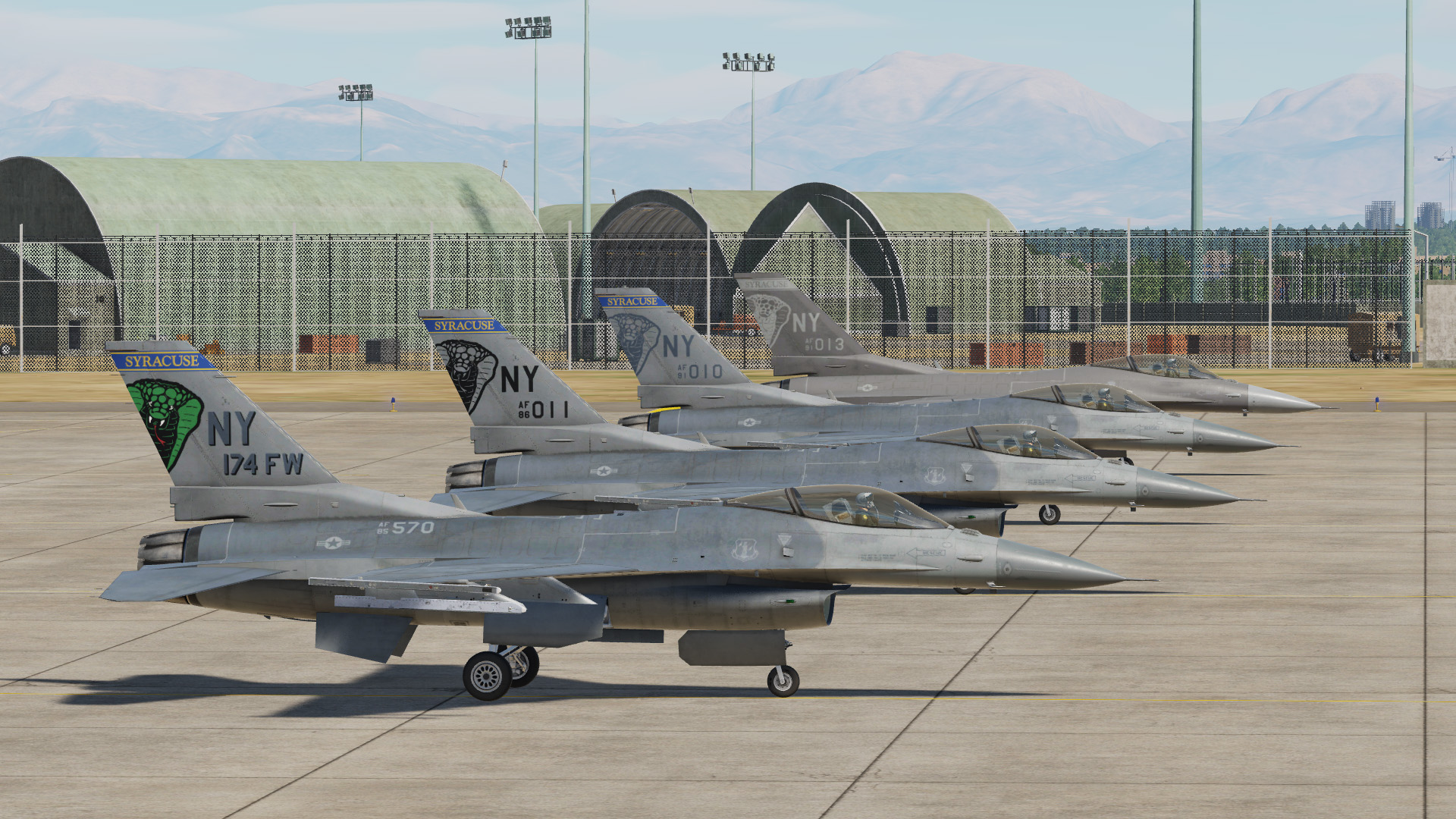 A F-16 from the 174th Tactical Fighter Wing, Syracuse, New York as it would of appeared during operation Desert Storm in 1991.