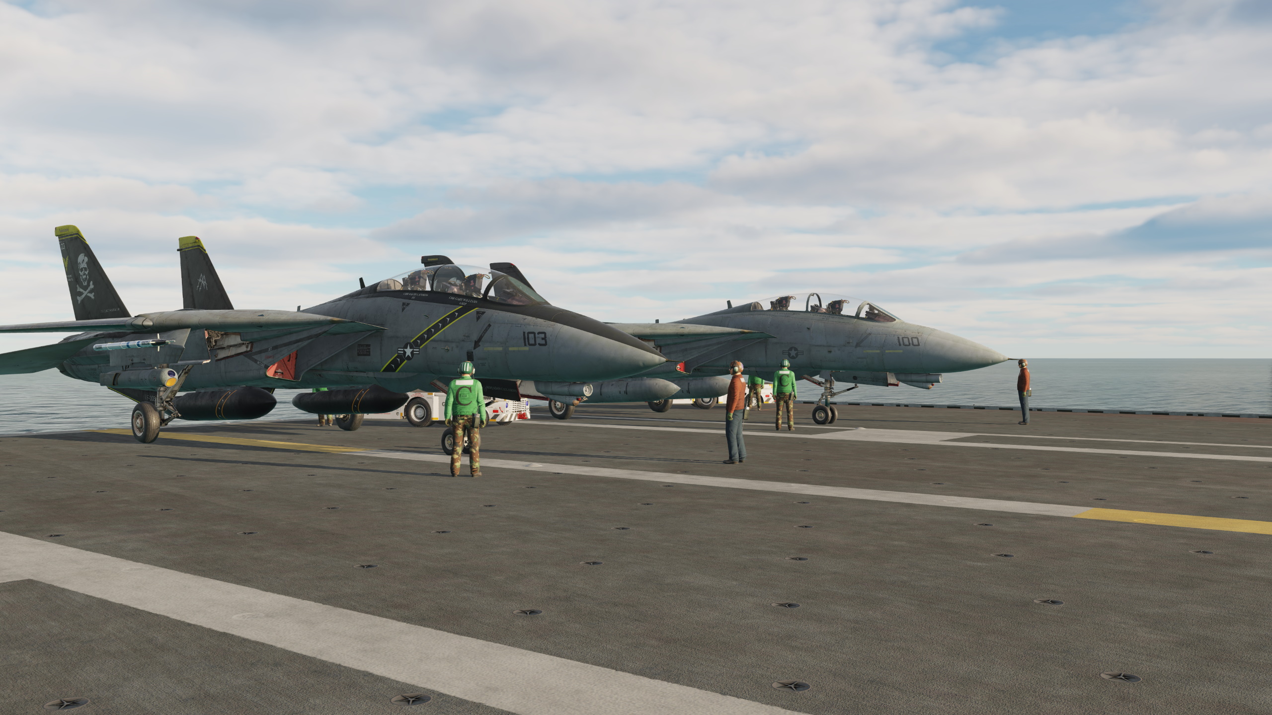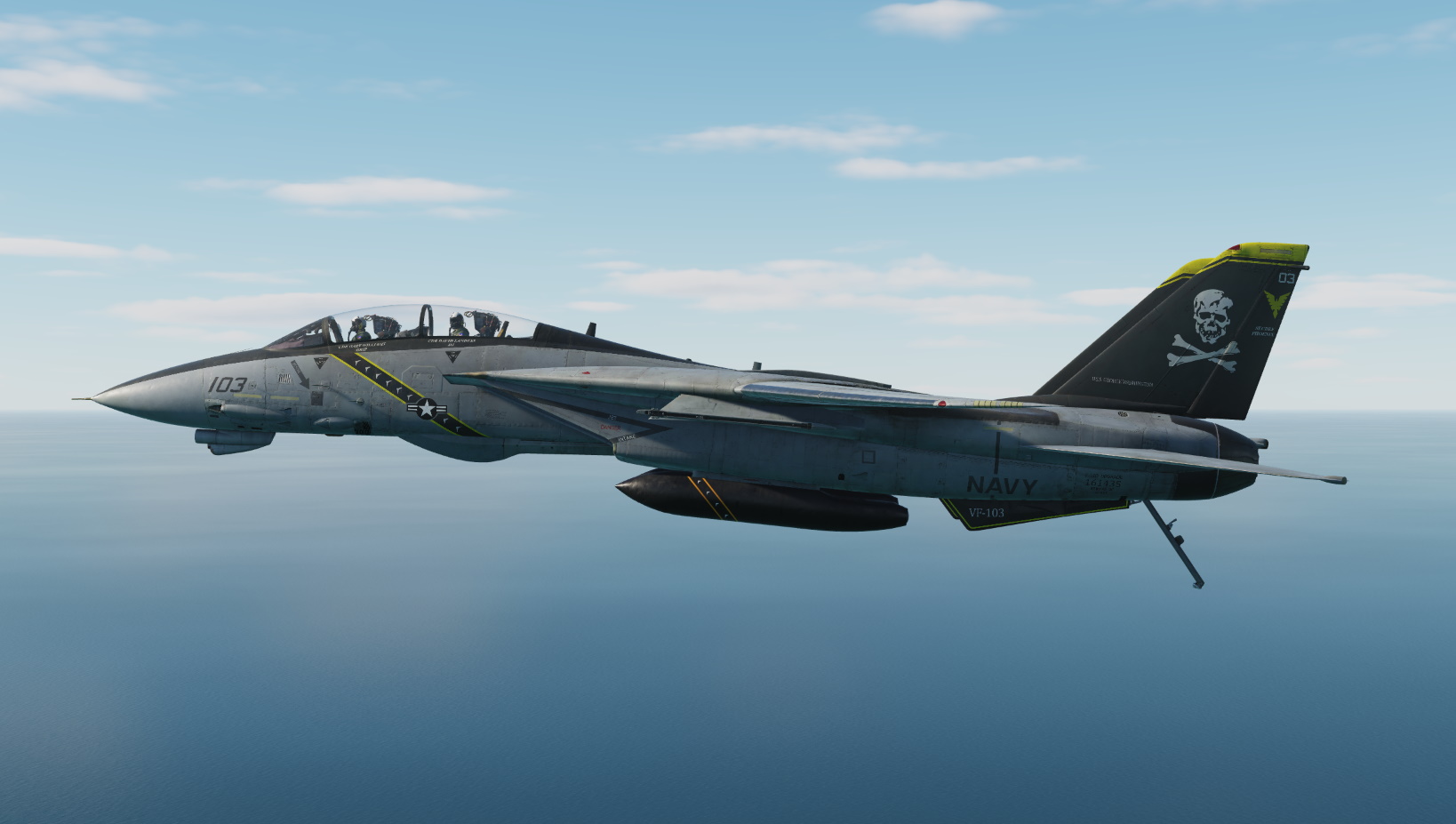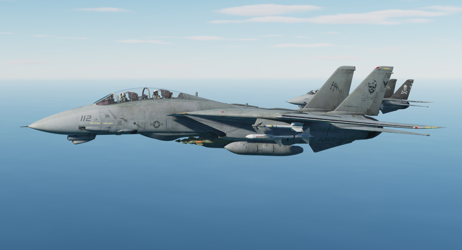 This skin represents AA 112 of VF-103 from their 2002 Mediterranean/North Arabian Sea cruise with CVW-17 aboard USS George Washington. As part of this deployment, VF-103 Tomcats flew combat missions over Afghanistan in support of Operation Enduring Freedom from July to September. The skins is based on the public paintkit. I've only adjusted modex, BuNo and names to match the markings of that time as well as making a little color correction.