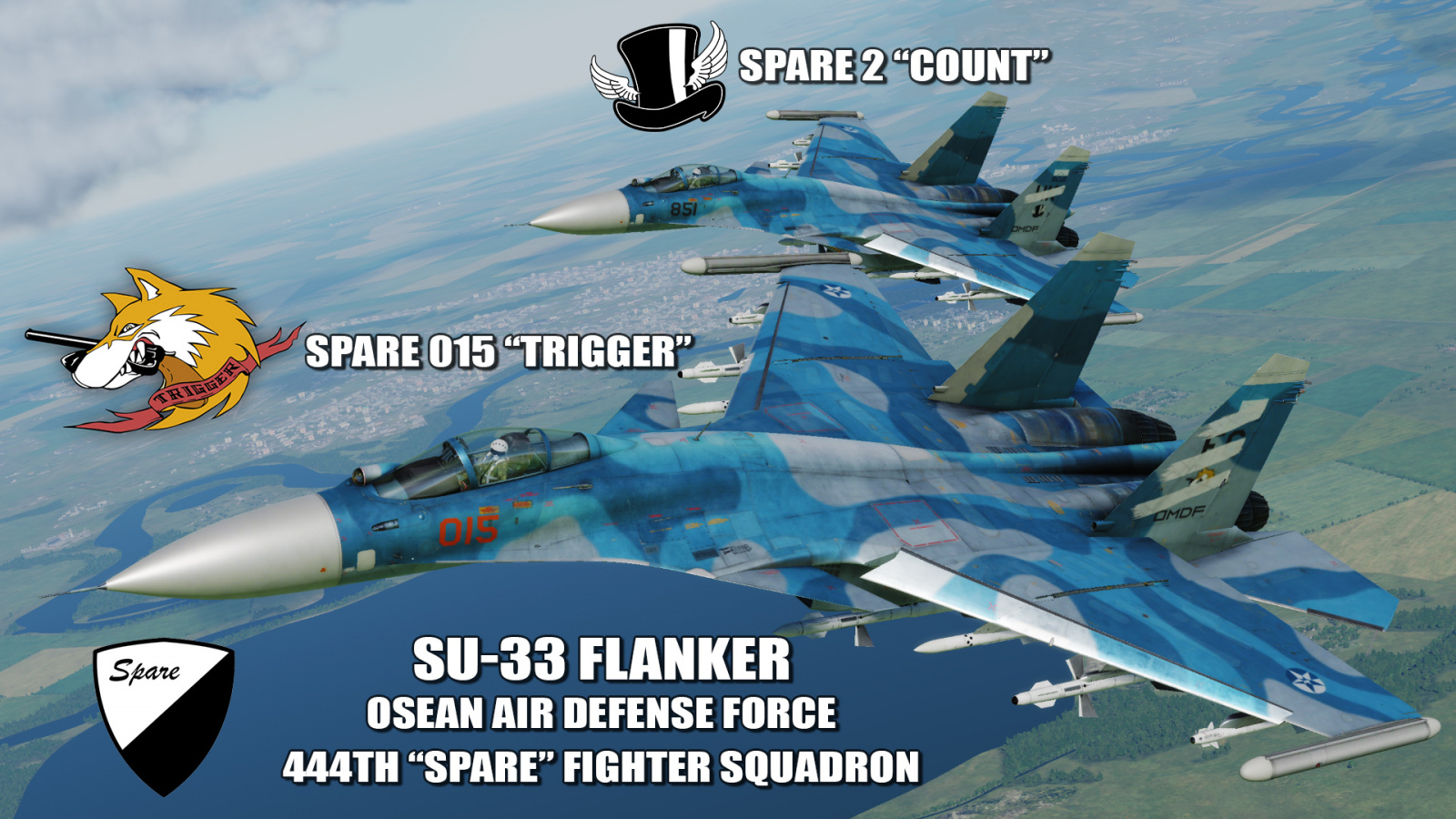 SU-33 Flanker in the livery of the Osean Air Defense Force 444th “Spare” Fighter Squadron members Spare 2 "Count" and Spare 15 "Trigger"