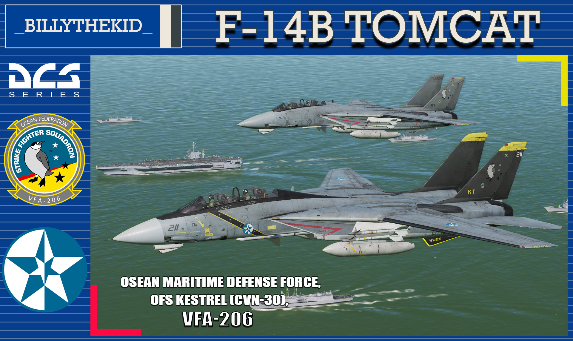 F-14B Tomcat of the Osean Maritime Defense Force VFA-206 deployed on the CVN-30 Kestrel.