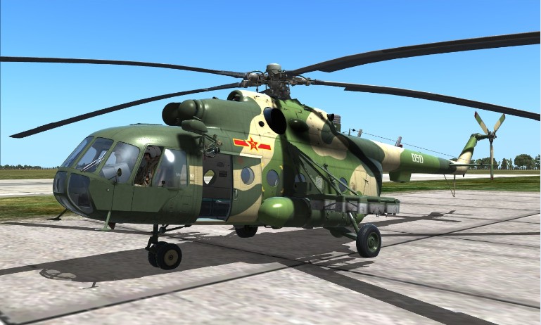 Chinese People's Liberation Army Army Aviation Corps skin, fuselage Chinese characterization handing inside and outside (external view), full details of the pilot: helmet Army markings, Army Aviation Corps armband, chest markings, flight rating badge.
