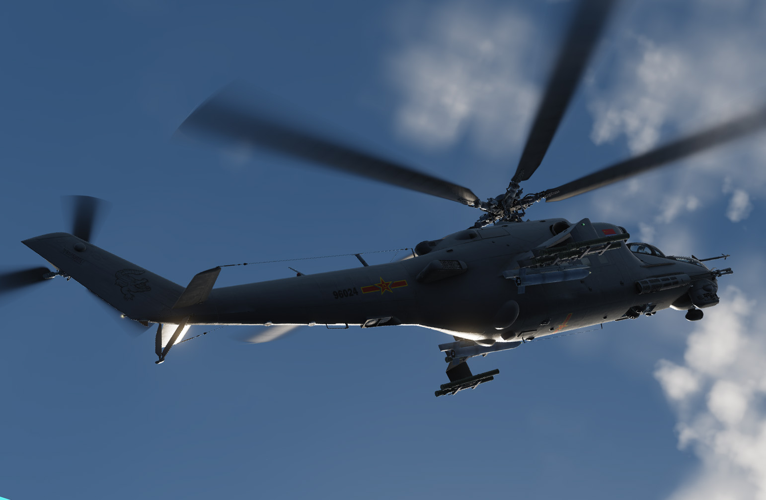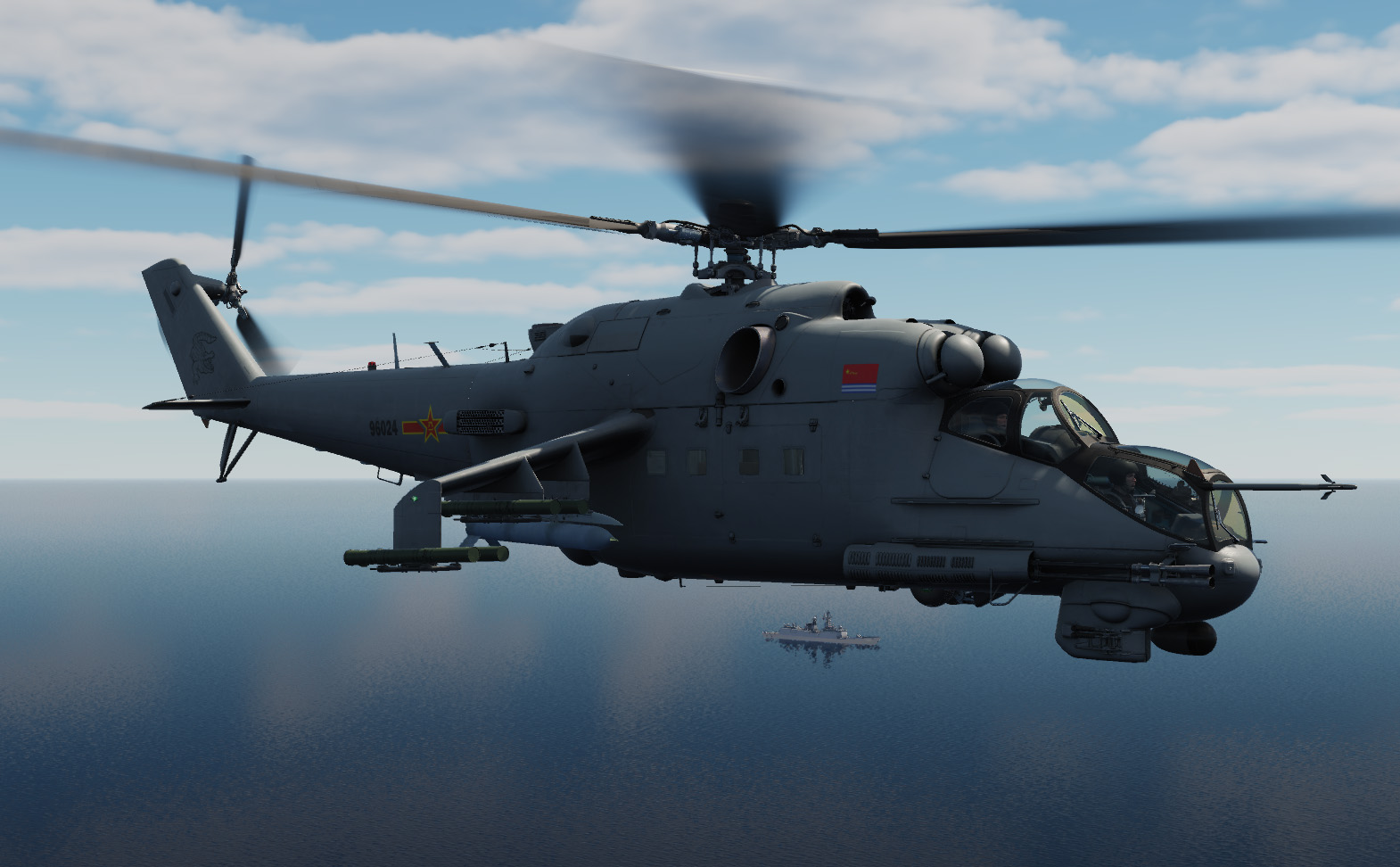 A gray Chinese Navy Mi-24P inspired by the Z-9 and J-15. I made this in order to do a Marianas Invasion scenario.