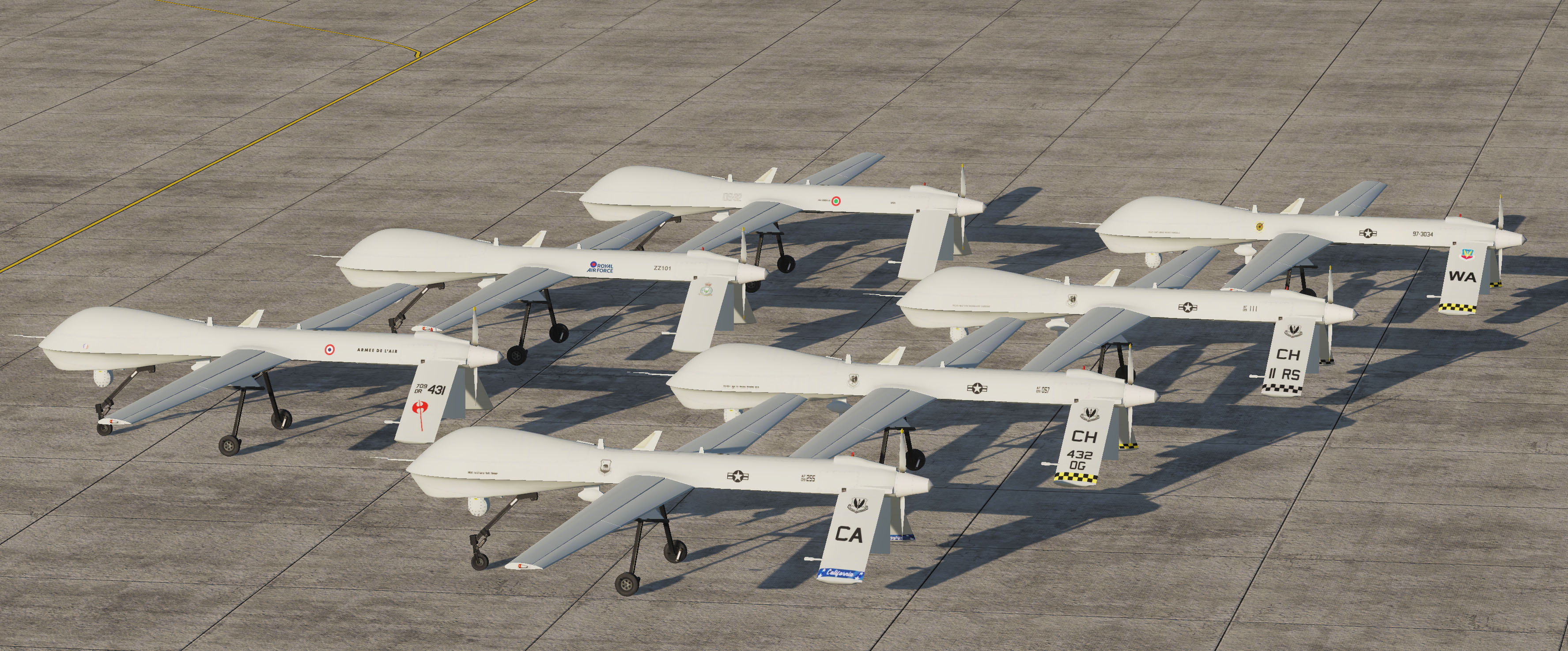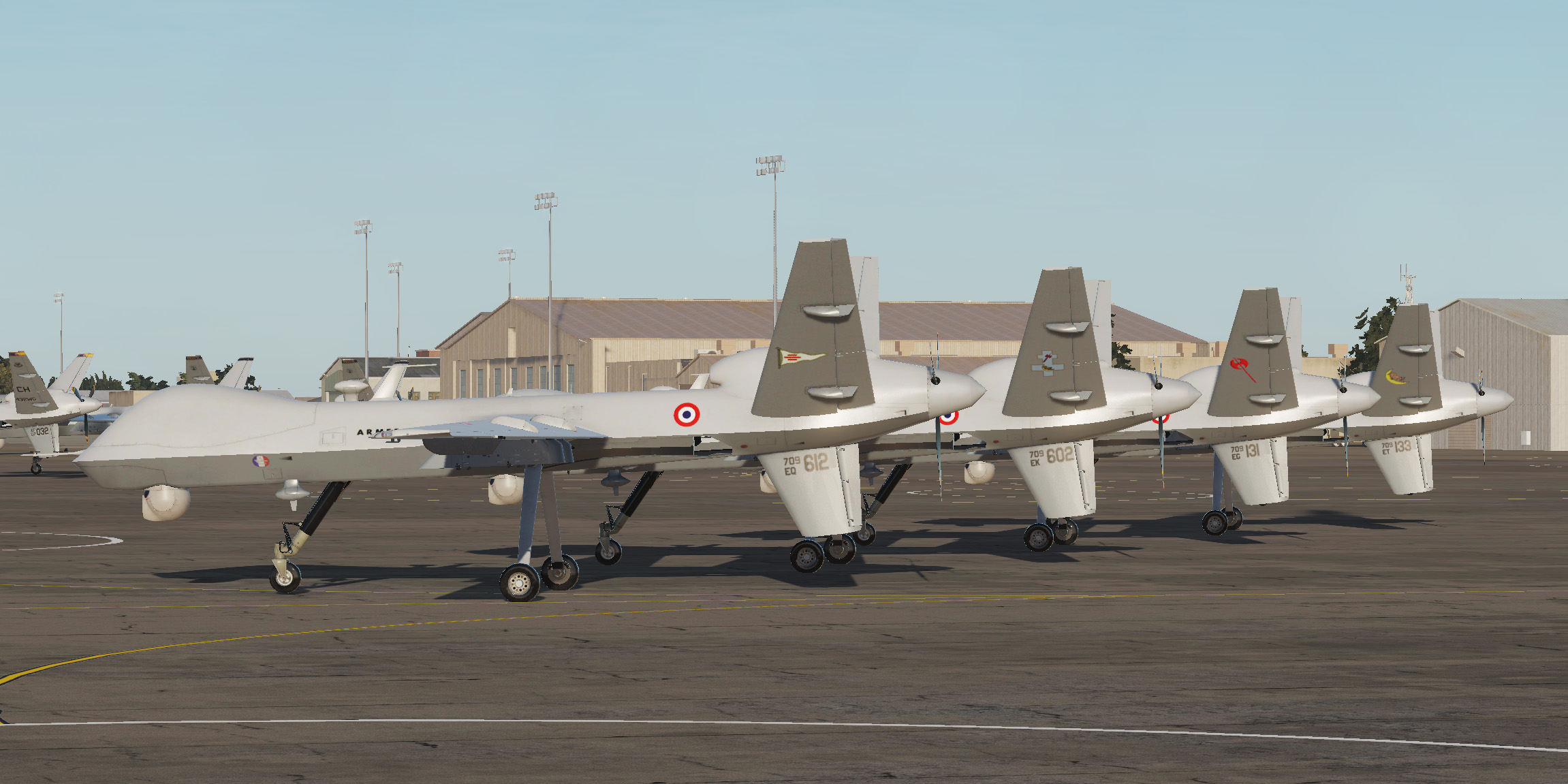 I made some simple skins for the UAV's. There are 8 US skins, 4 french and 1 australian for the MQ-9 Reaper. For the RQ-1 Predator are 4 US skins and for France, Italy and the UK each one skin.