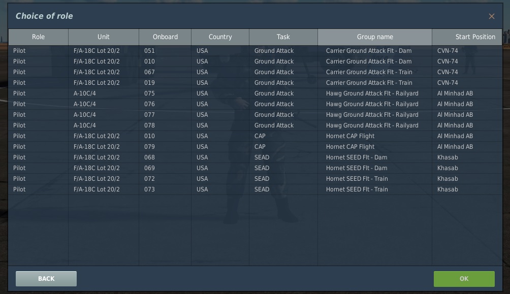 RED forces have a few slots for CAP Su-27, Su-33, MiG-29A, MiG-21Bis to fend off the BLUE forces attacks. BLUE forces are the aggressors and RED forces are the defenders.