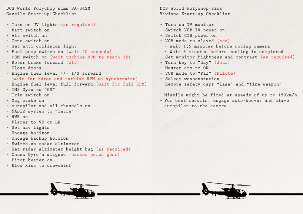 Start-up checklist for the SA-342 Gazelle. (version 2 changes, see description)