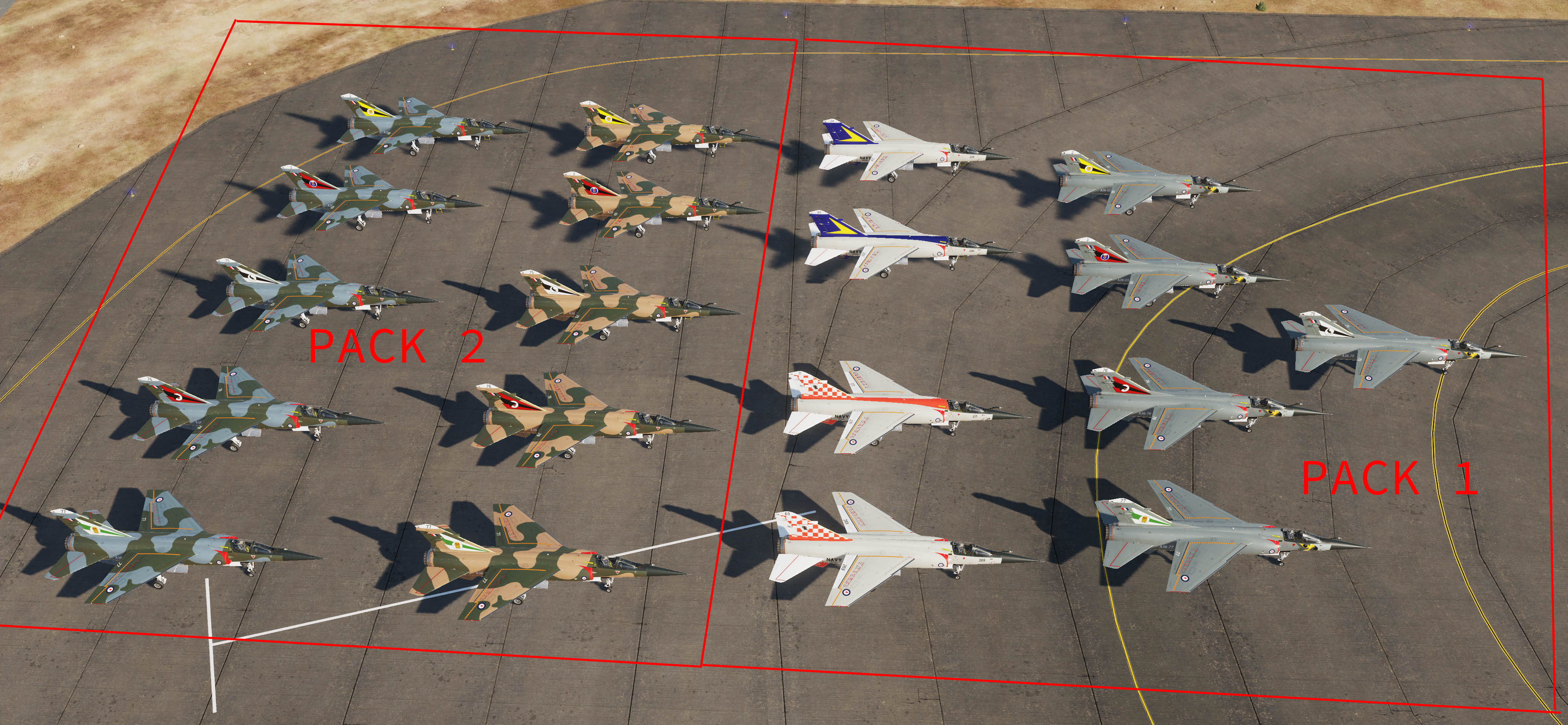 Australian Mirage F-1 Pack 2 includes: (in the style of RAAF Mirage IIIO aircraft of the 1970s)\n