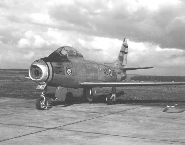 Canadair Sabre Mk.6 23392 of No. 422 "Tomahawk" Squadron, No. 4 (Fighter) Wing, RCAF Station Baden-Söllingen, West Germany, circa 1955.