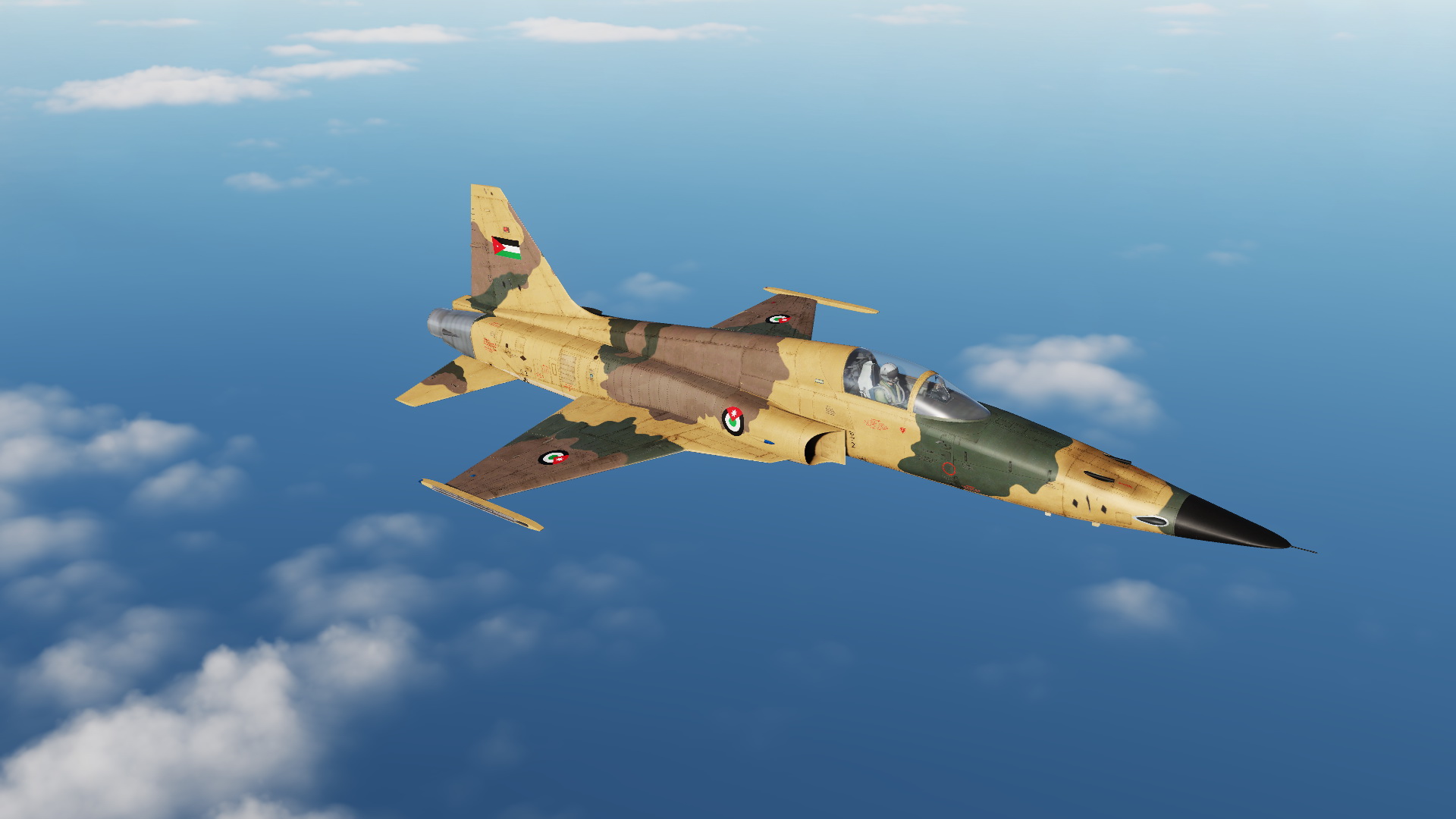 3 sets of skins for the F-5E2 Tiger II in Royal Jordanian Air Force texture (RJAF).