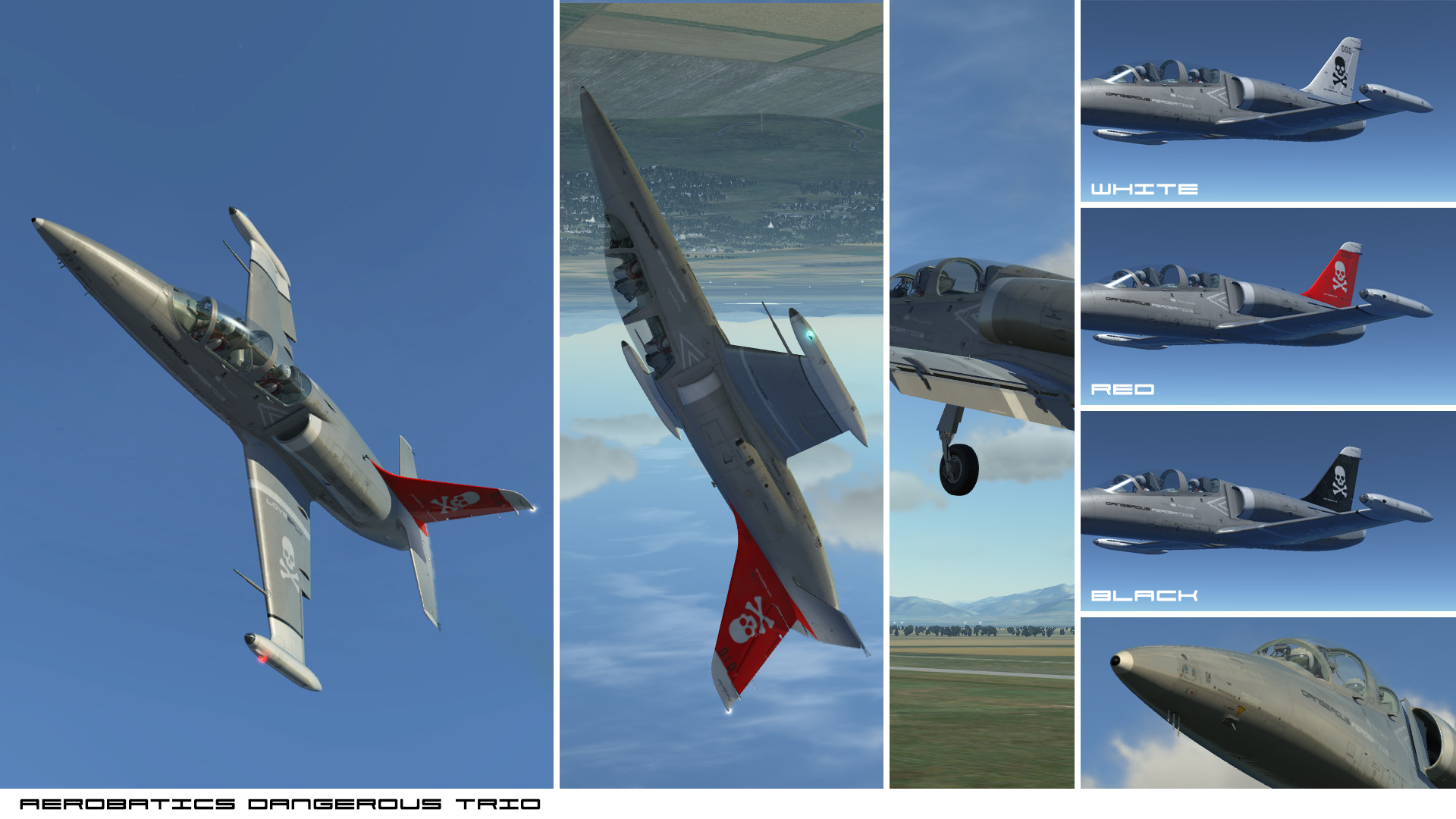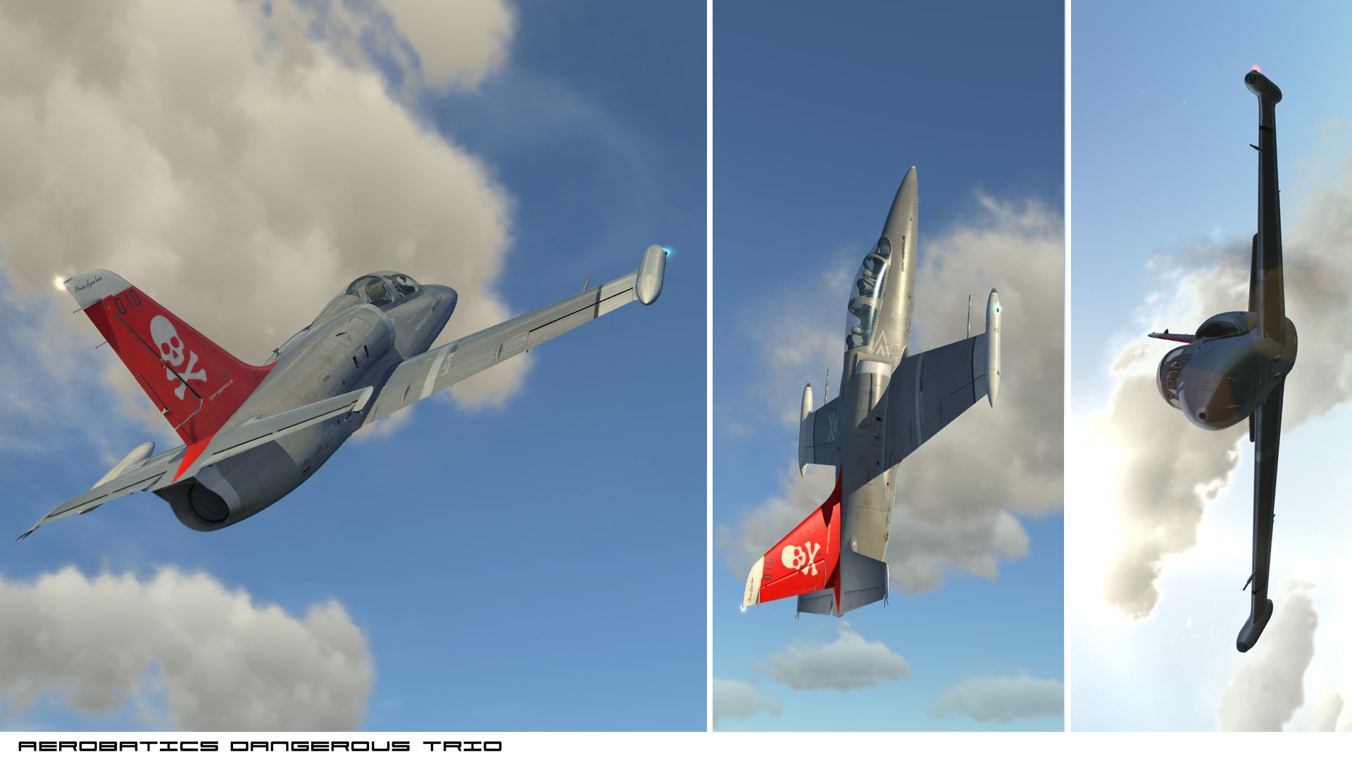"Aerobatics Dangerous Trio" is fictional Aerobatic team skin for DCS:L-39C Albatros.