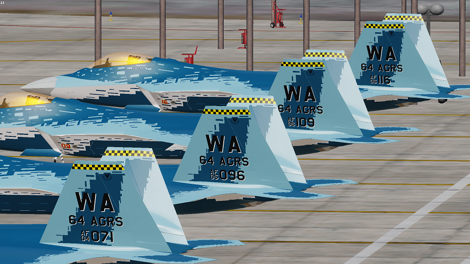 4 Repaints of the Community F-22A Mod (Version II) - Originally by GrinnelliDesigns - These are fictional paints for if the F-22 was used by the 64/65th Aggressor Squadron at Nellis AFB.