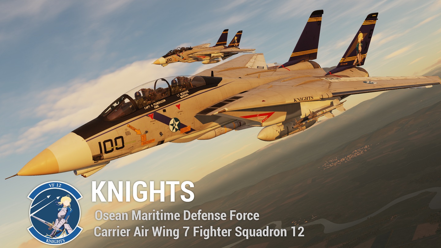 the VF-12 Knights have a long history within the Osean Maritime Defense Forces, starting with the units inception flying the TBM Avenger Torpedo Bomber as VT-12, before redesignating as Fighter Squadron 12 when they recieved the F-9 Cougar for conflicts in Southern Verusea. It wasn't long before the Knights found themselves as the first of the Last Gunfighters, operating the F-8 Crusader in successful raids against Yuktobanian and Valkan targets. A well established service history made the squadron one of the first to receive the brand-new F-14 Tomcat in the summer of 1972.