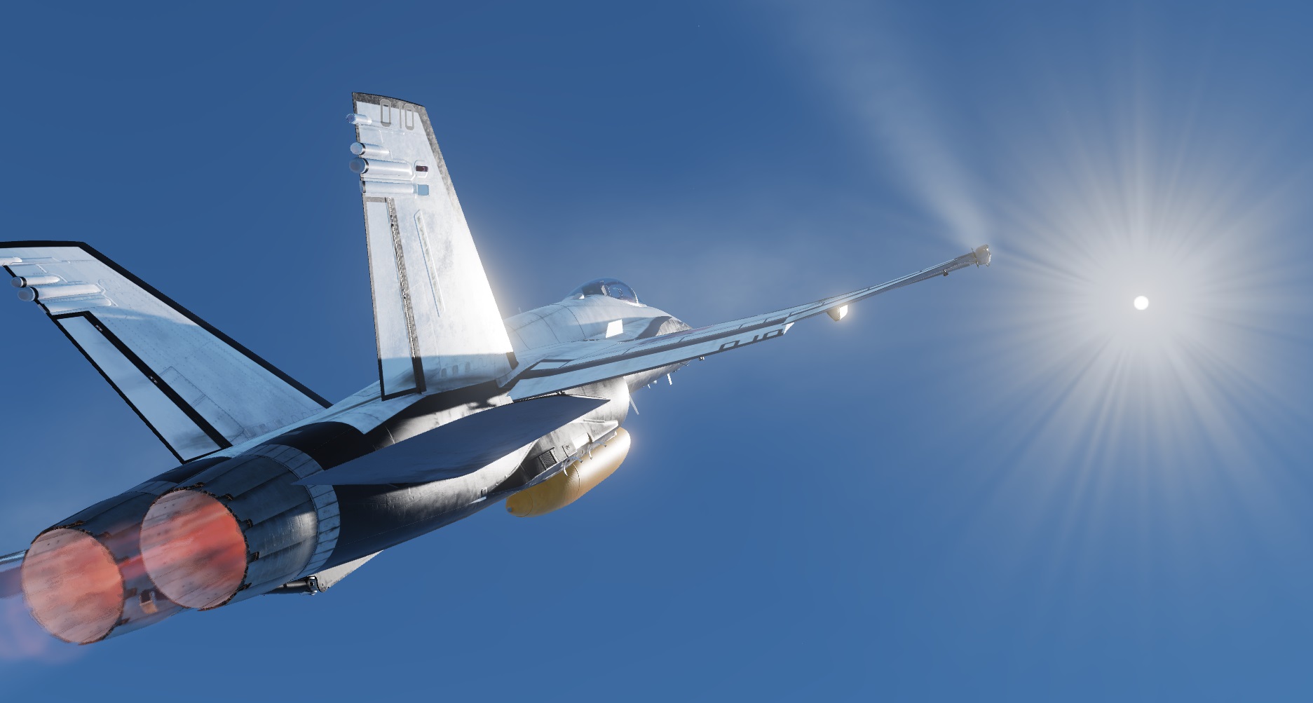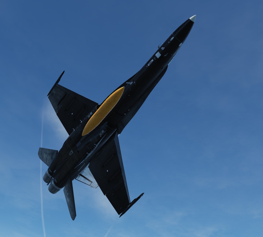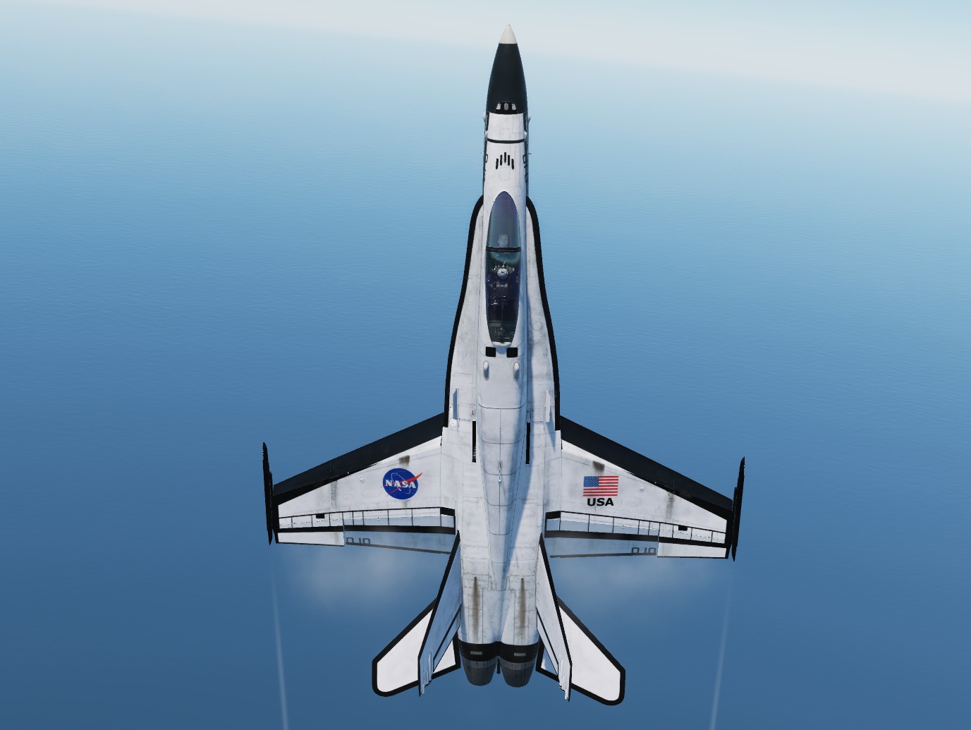 This skin commemorates NASA's Space Shuttle program, which ran from 1972 to 2011. It includes a complete exterior skin for the F/A-18C and its fuel tank. The skin takes inspiration from each of the Space Shuttles and does not mimic a specific Shuttle in particular.