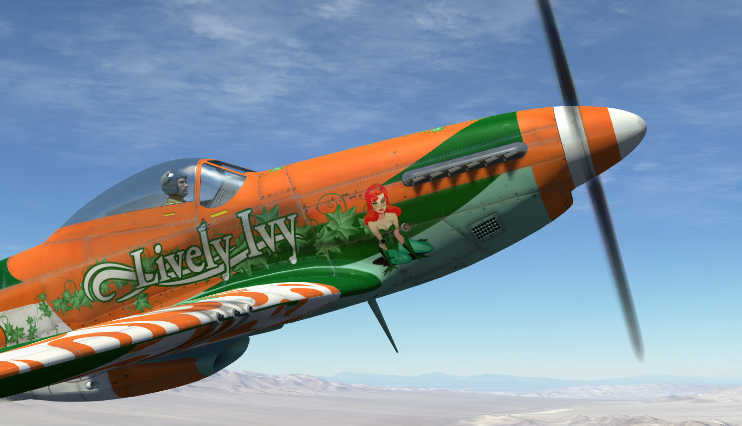 An air-show friendly livery that features floral and ivy patterns, and a decal of Bruce Timm's lovely Poison Ivy from the early 90's Batman: the Animated Series cartoon.
