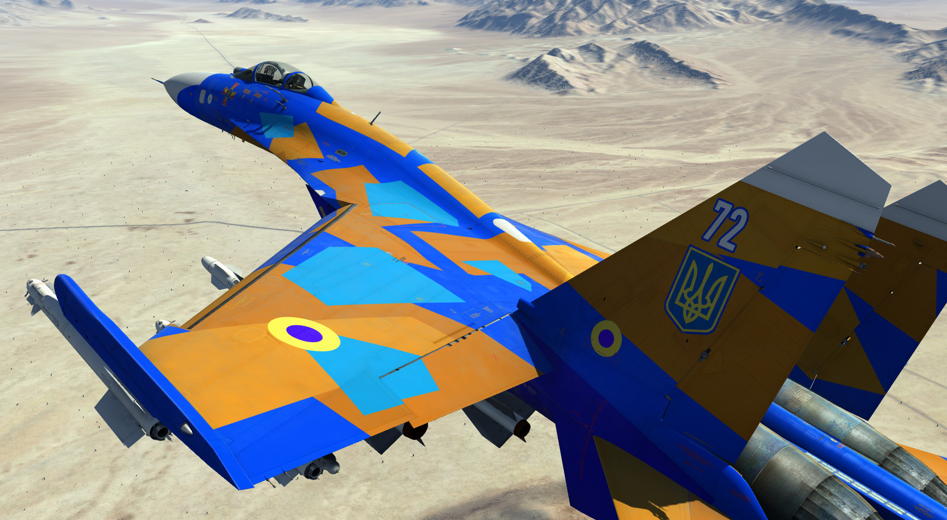 A fictional Ukranian skin for the Su-27, intended for airshow purposes.