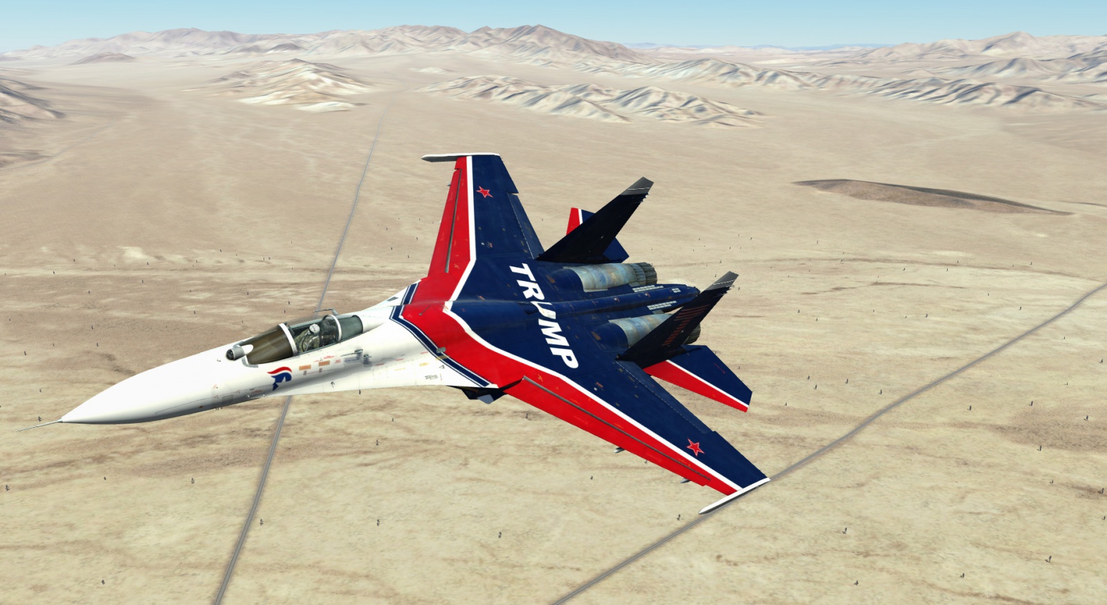 As seen on twitter! Fly around as the Donald himself, and Make America Great Again in this badly photoshopped Su-27 brought to life!