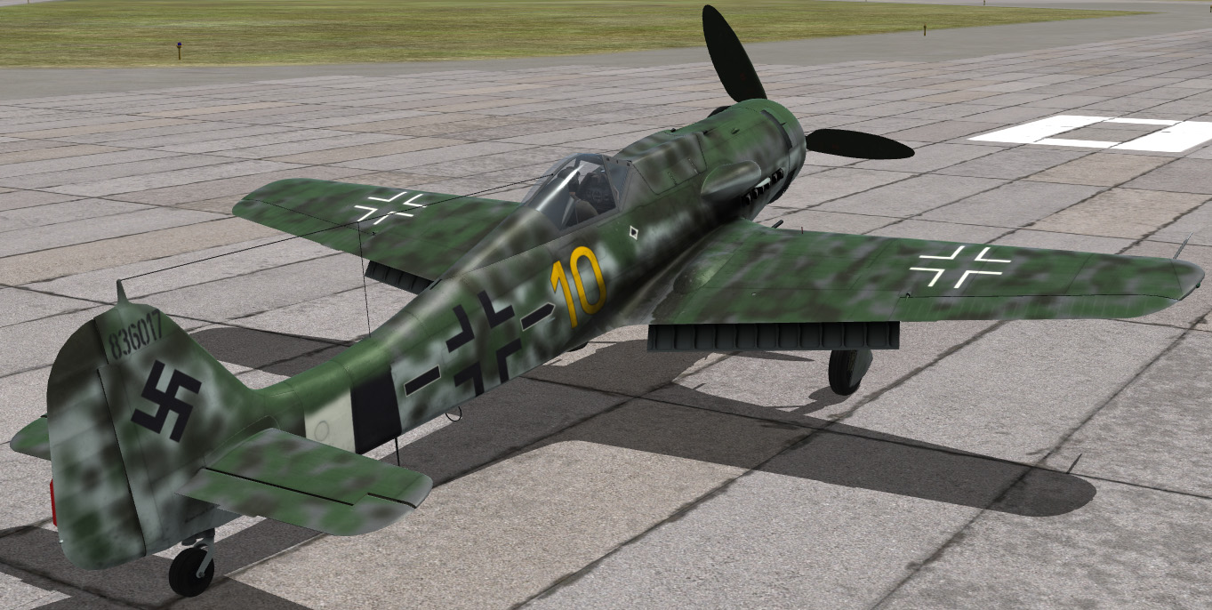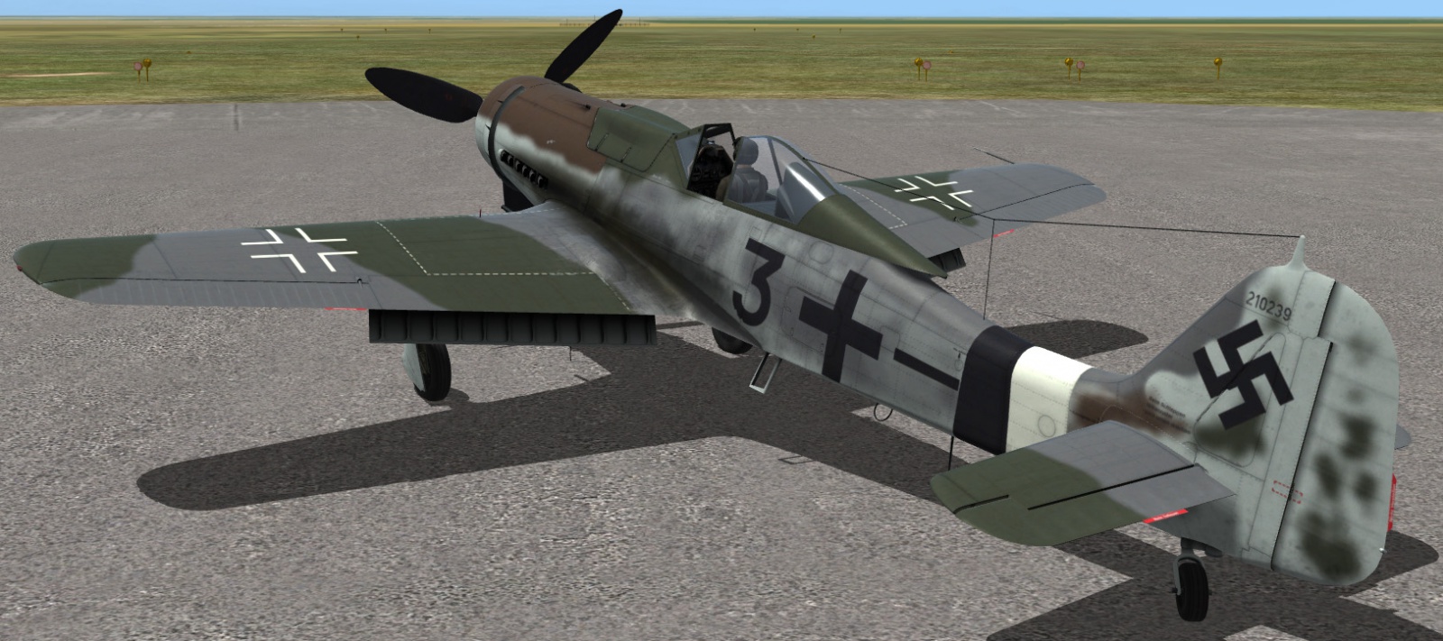 Modern-day Paint & Markings for an Fw-190D-9 in contemporary USAF low-vis grey camo schemes commonly seen on F-15Cs, Includes fully translated markings into English around the entire exterior, and nose art.