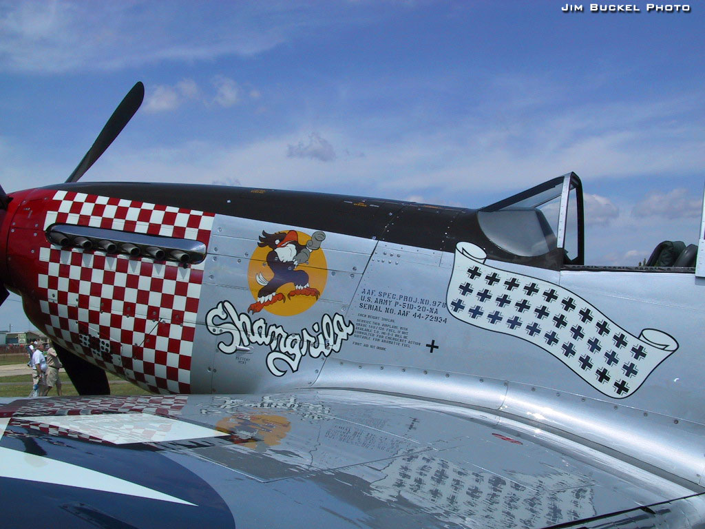 Questa è la skin del North American P-51D, il famoso "Shangri-la" pilotato nel teatro d'operazioni europeo dall'asso americano di origini italiane Dominic Salvatore Gentile, conosciuto semplicemente come "Don Gentile". Volontario con la RAF già nel 1940, Don Gentile divenne presto famoso per la raffinatezza ed efficacia delle sue tecniche di duello aereo. Alla fine della guerra Don Gentile aveva raggiunto 28 vittorie sicure, 8 probabili e 8 aerei distrutti al suolo. Un punteggio da grande asso dell'USAAF, che gli fruttò la "Distinguished Flying Cross" dalle mani di Eisenhower e che lo portò su tutti i giornali americani.