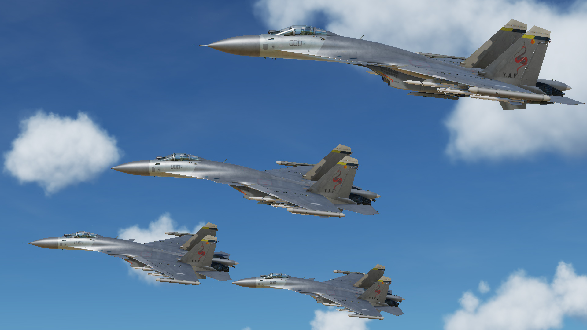 SU-33 Flanker of the Leasath Air Force 5th Fighter Wing, 6th Air Brigade "Cardenal". There are two versions of this livery, one in English and the other in Spanish.