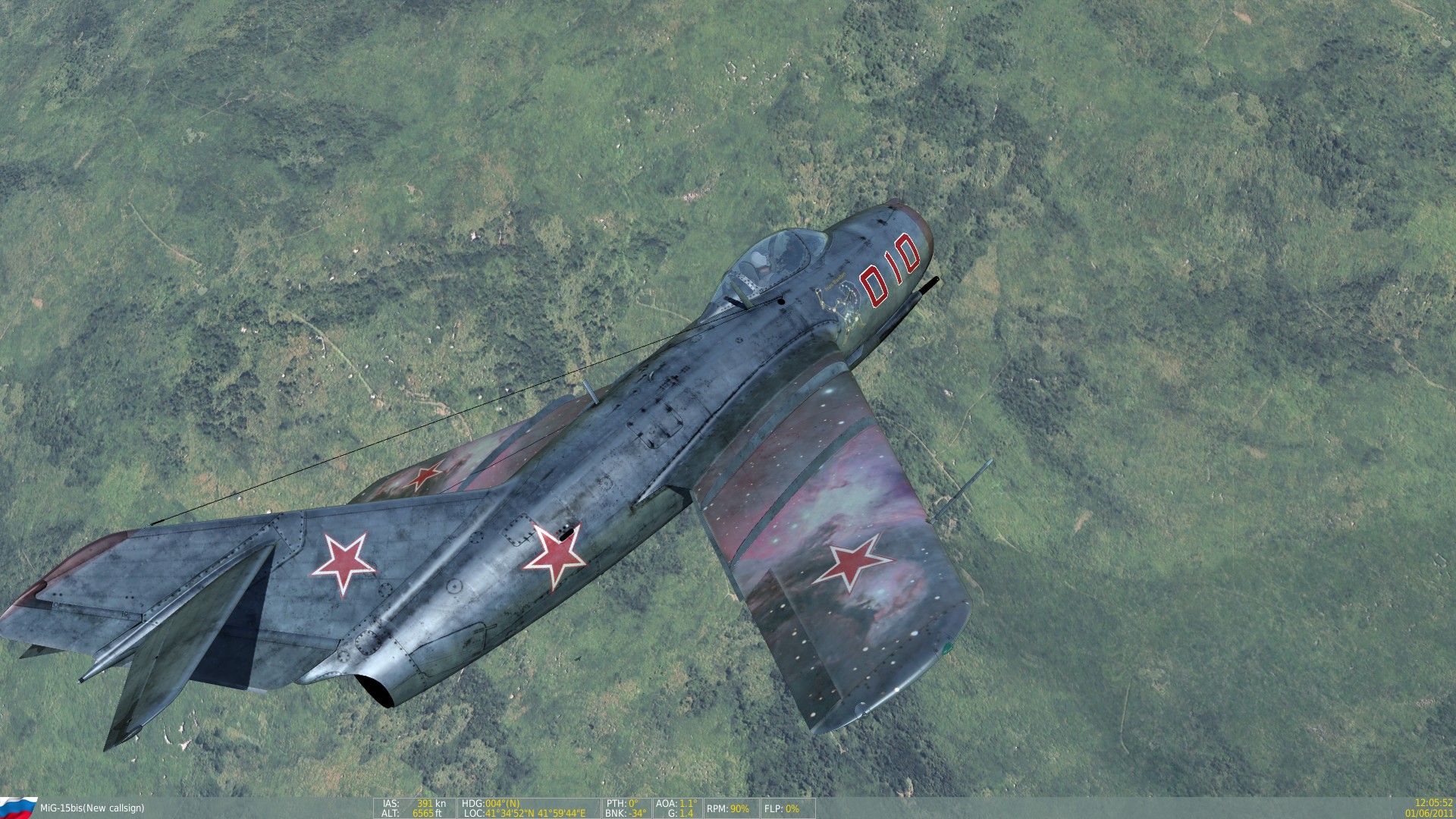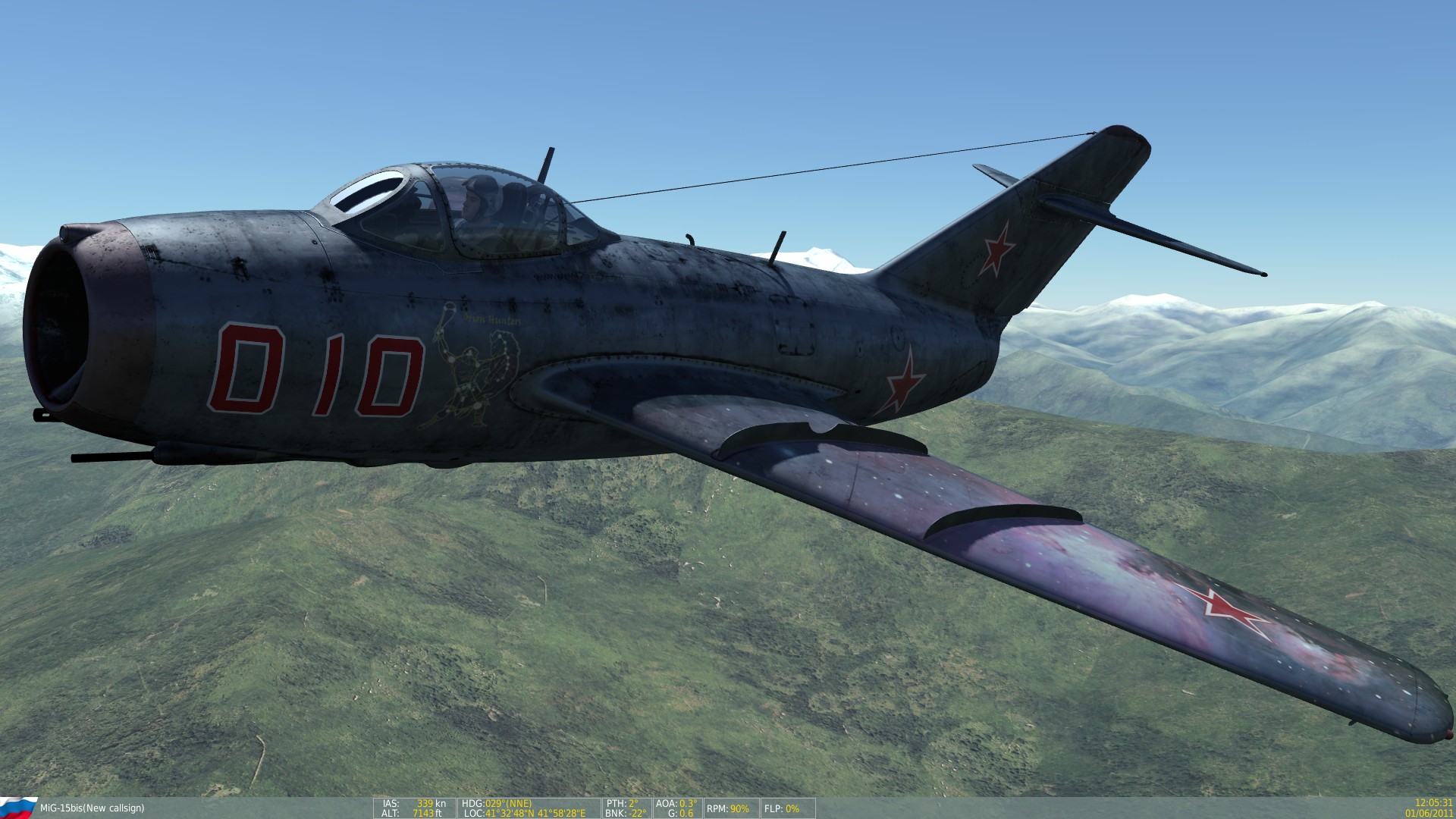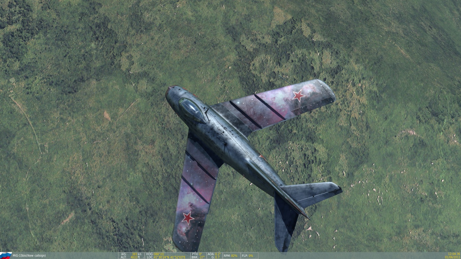 MiG-15bis paint scheme. Orion Nebulae on the wings with hunter insignia on the nose.  Special black paint job. Fictional Squadron.  Works with USSR Countries.