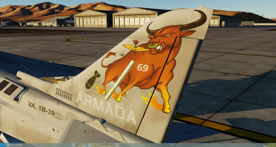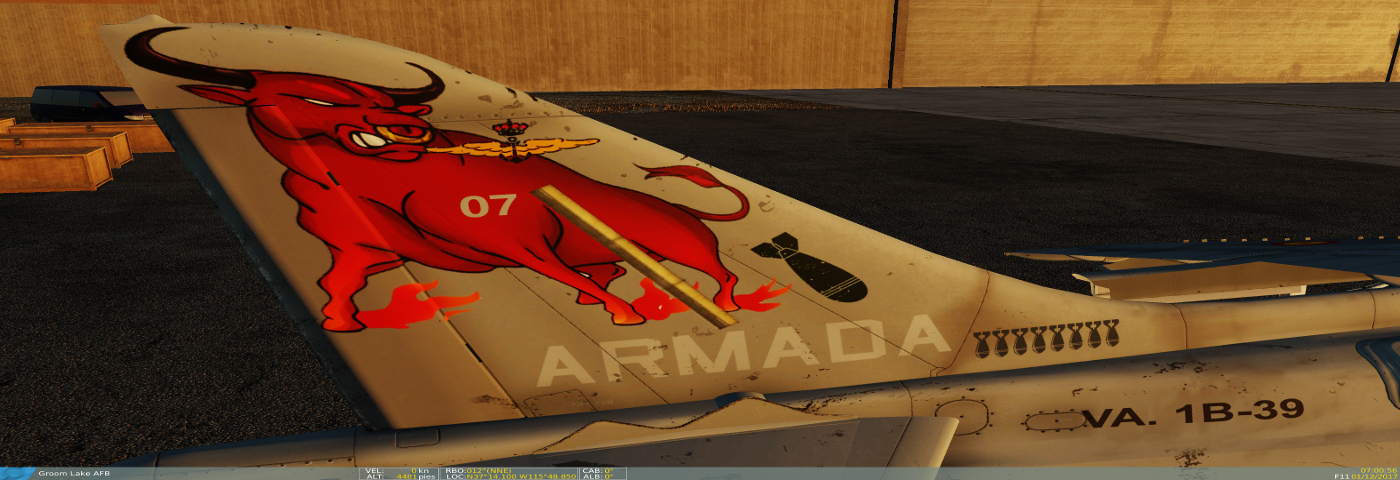 Skin Harrier Armada Española 8º Escuadrilla Matador , 3 opciones de modificación del Skin "Morro con Númeral, Timon ToroBomba y CascoToro.