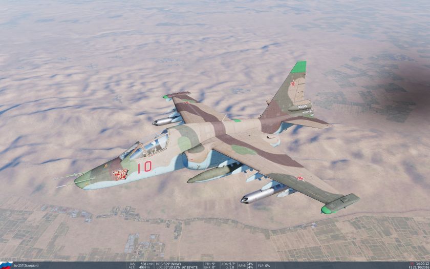 Semi-fictional skin for the SU-25T for arid environments based on the DCS SU-25T 'af standard1' livery.