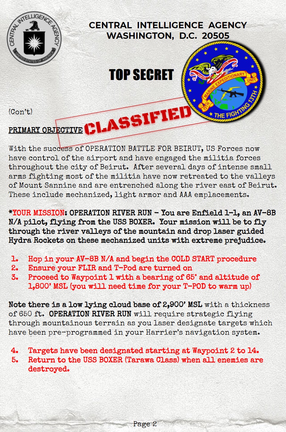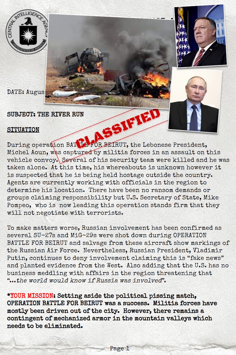 Following the events of the last episode in THE RIVER RUN, the militia groups have been driven out of the city and the remaining forces in the mountain valleys have been routed out following your excellent work with the laser guided rockets.  However, your work is not yet finished and you are now being called on again as the kidnapped Lebanese President Michel Aoun has been located.