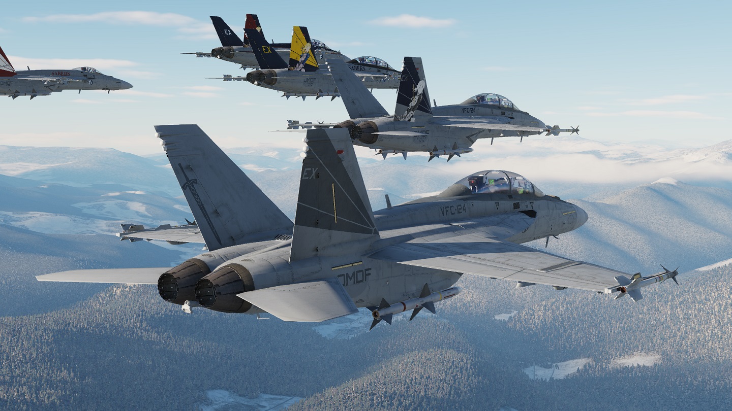 A "what if" livery depicting "Enchanter", the EA-18G squadron appeared in Ace Combat 7 DLC Mission 1.  Requires CJS Super Hornet mod